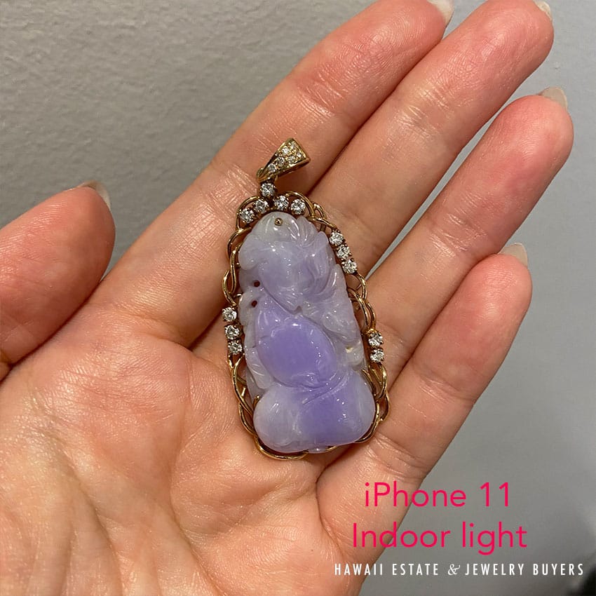 PIERCED CARVED TRANSLUCENT MOTTLED PURPLE JADEITE JADE