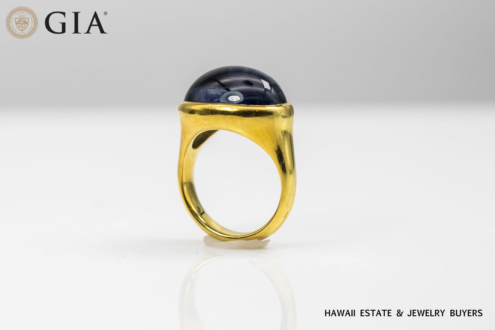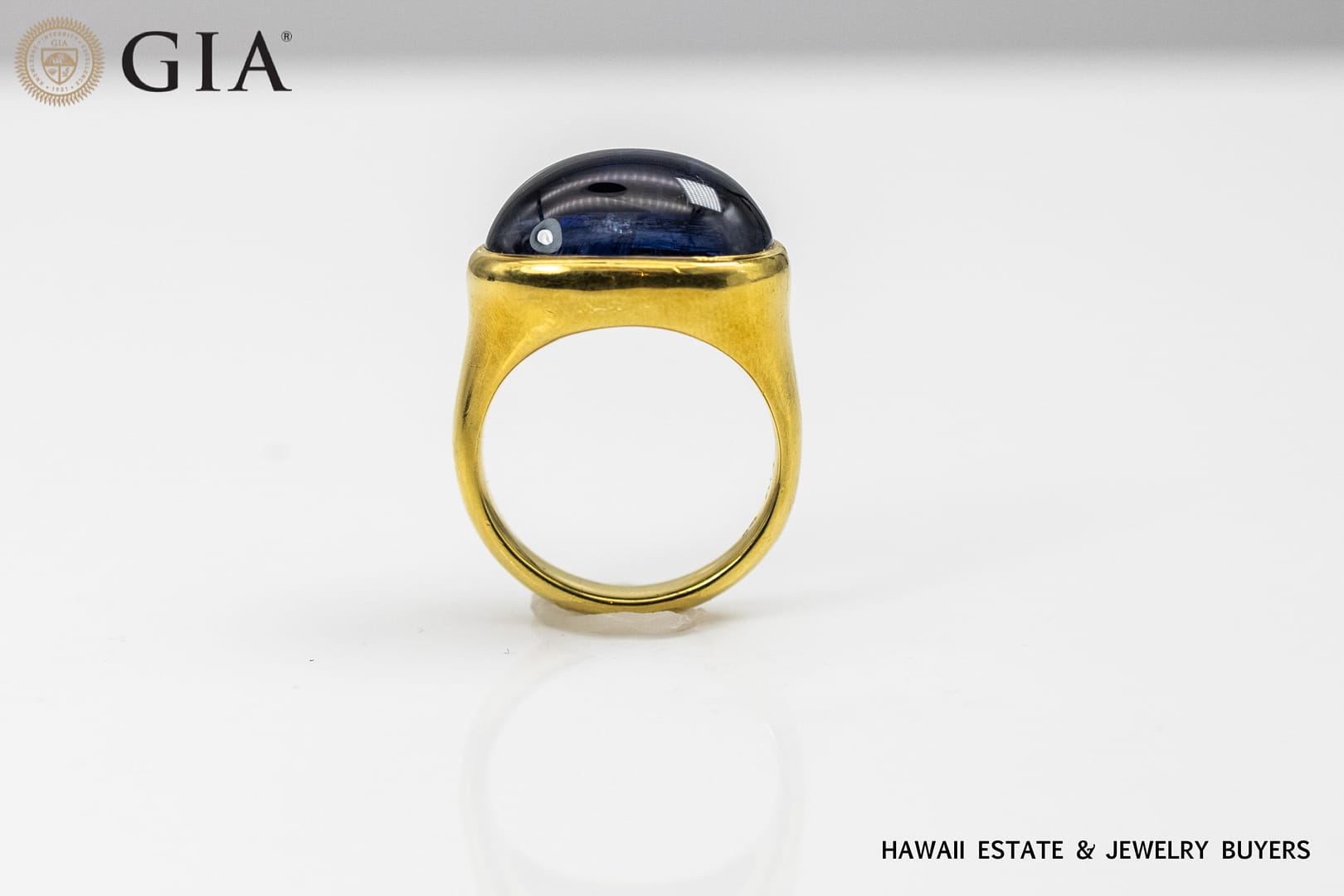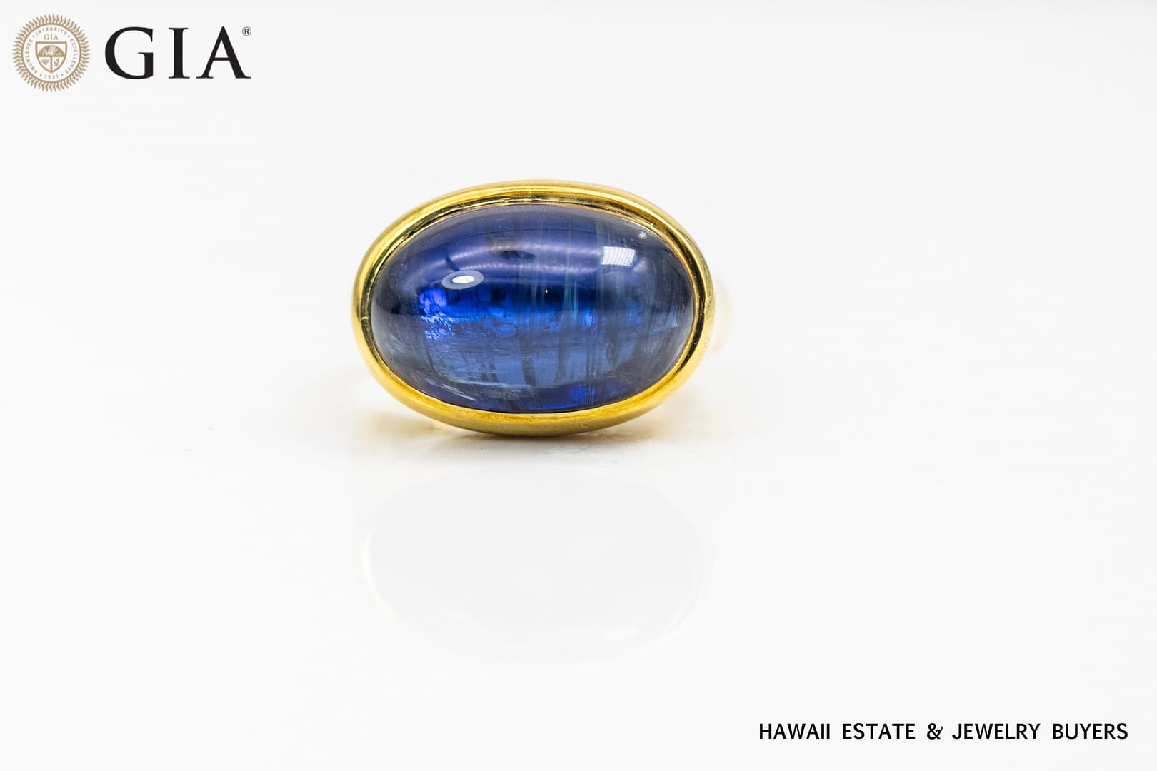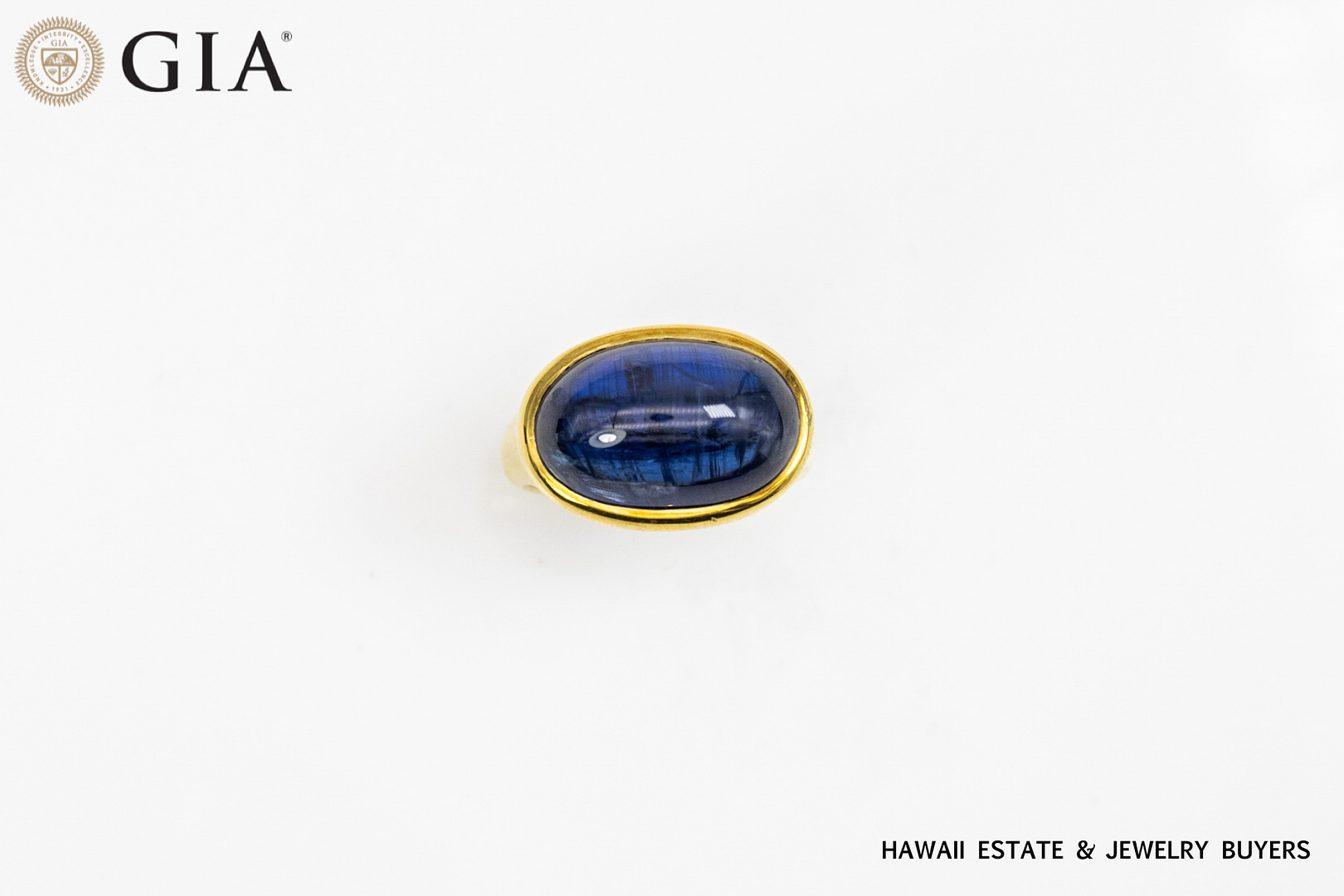 GIA CHRISTOPHER WALLING 16.7g 18KYG KYANITE CABOCHON RING SIZE 9.5