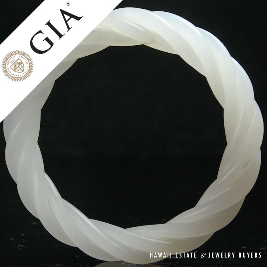 Home » Shop » GIA Grade A Nephrite Jade Twist Bangle