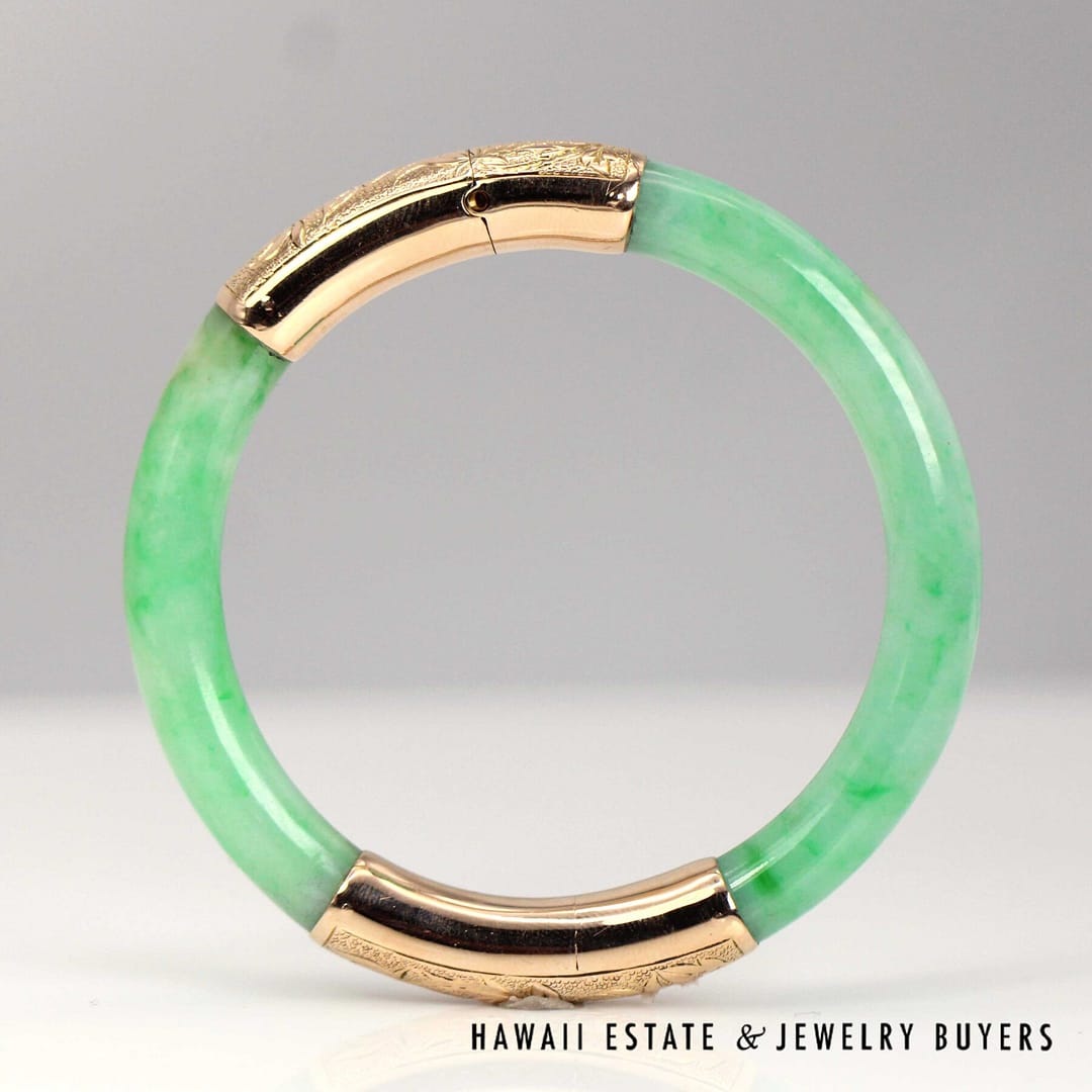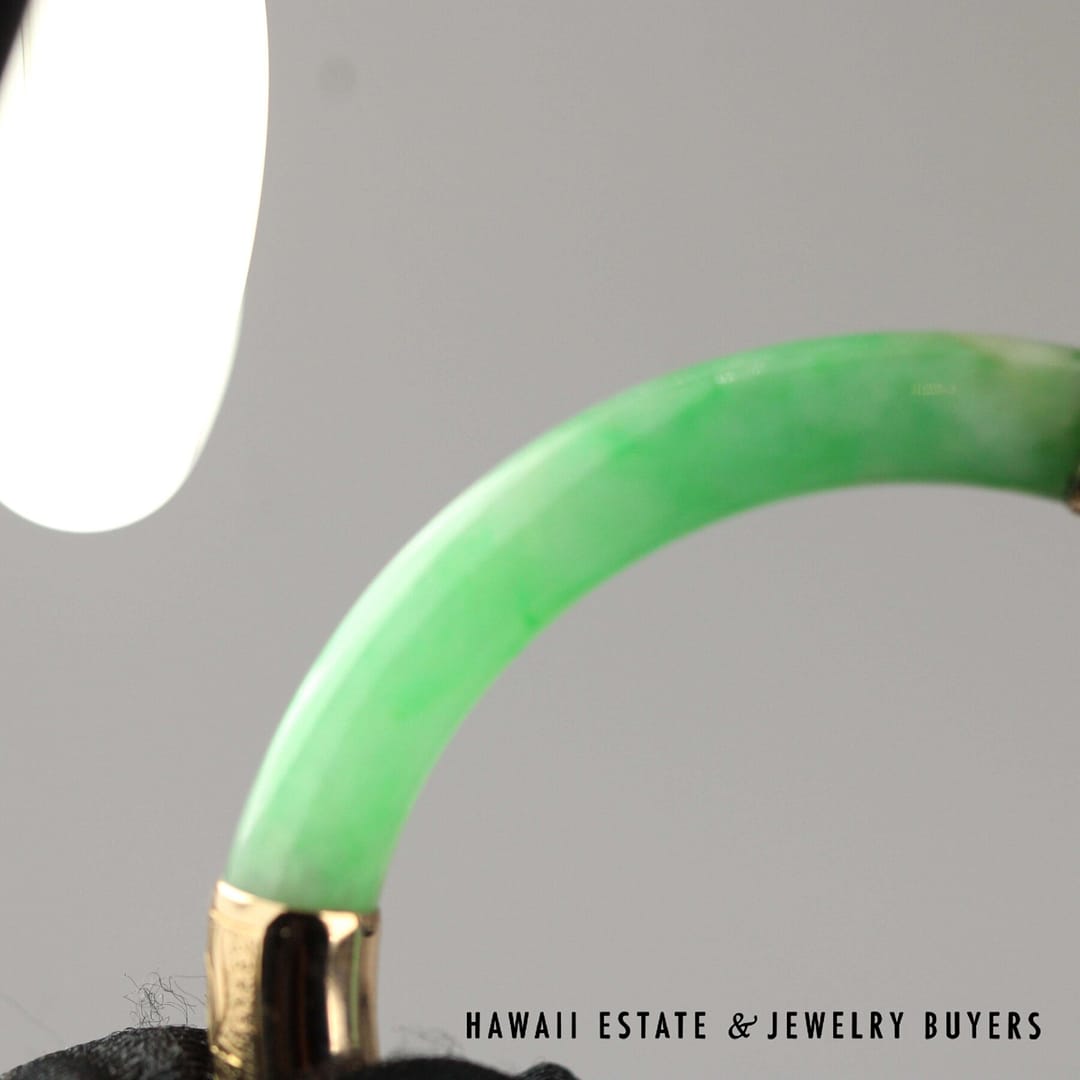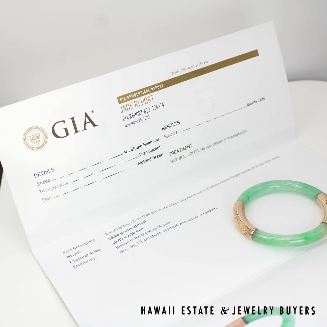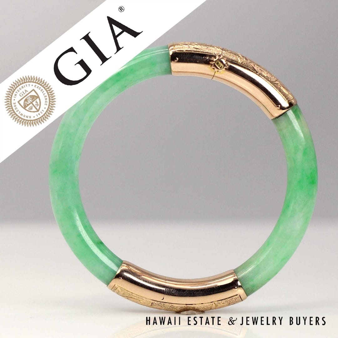 DescriptionGIA 6237126374 – NATURAL COLOR. No indications of impregnation.GIA 28.3g 14KYG GREEN JADE HINGED BANGLE BRACELET SIZE 6 (2948-03)$5,900.001 in stockGIA Green Jade 28.3g 14KYG Hinged Bangle Bracelet Size 6 quantityAdd to cartMake OfferSKU: 2948-03Category: GIARelated StylesGIA Jadeite Jade Moss in Snow Carved Four Disciple 14k Yellow Gold Large Pendant$3,800.00GIA Grade A Green NATURAL Jadeite Jade 0.66ctw Diamond 18K Yellow Gold Brooch$4,500.00GIA Natural Jadeite Jade Grade A 14K Yellow Gold Carved Pendant$2,500.00GIA Jade Lavender Circle Cabochon Round Diamond 18k Yellow Gold Earrings$8,000.00