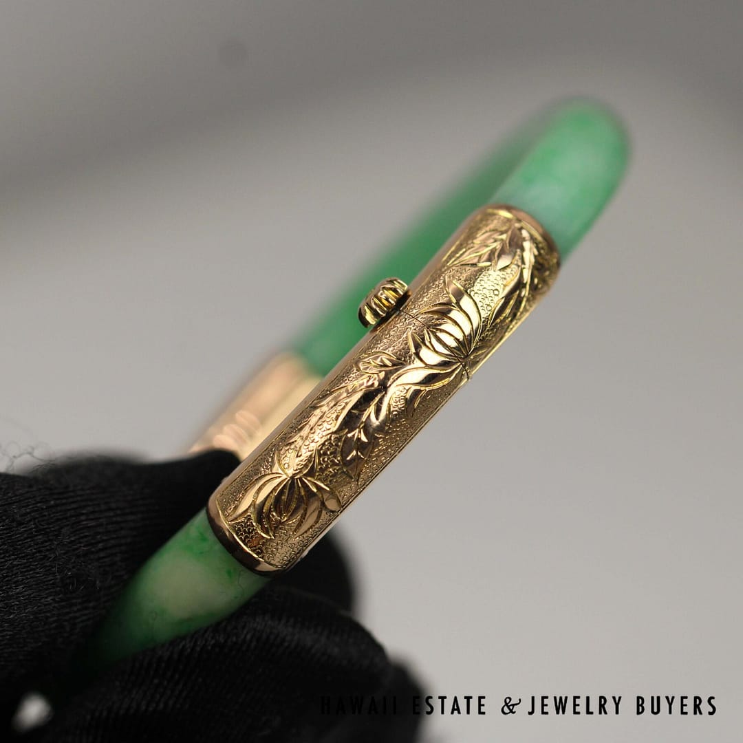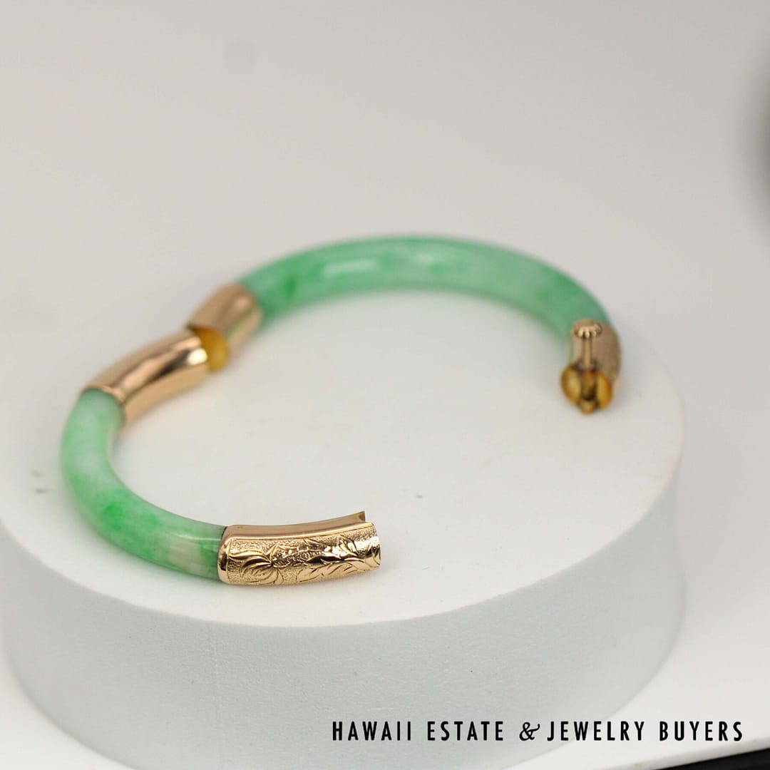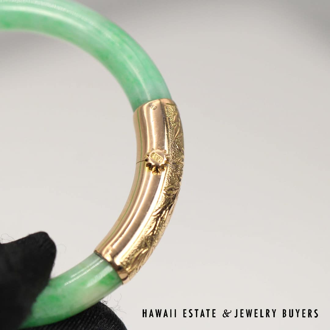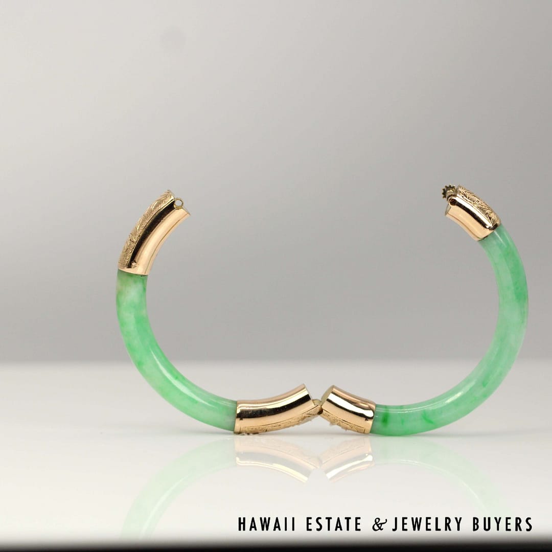 DescriptionGIA 6237126374 – NATURAL COLOR. No indications of impregnation.GIA 28.3g 14KYG GREEN JADE HINGED BANGLE BRACELET SIZE 6 (2948-03)$5,900.001 in stockGIA Green Jade 28.3g 14KYG Hinged Bangle Bracelet Size 6 quantityAdd to cartMake OfferSKU: 2948-03Category: GIARelated StylesGIA Jadeite Jade Moss in Snow Carved Four Disciple 14k Yellow Gold Large Pendant$3,800.00GIA Grade A Green NATURAL Jadeite Jade 0.66ctw Diamond 18K Yellow Gold Brooch$4,500.00GIA Natural Jadeite Jade Grade A 14K Yellow Gold Carved Pendant$2,500.00GIA Jade Lavender Circle Cabochon Round Diamond 18k Yellow Gold Earrings$8,000.00
