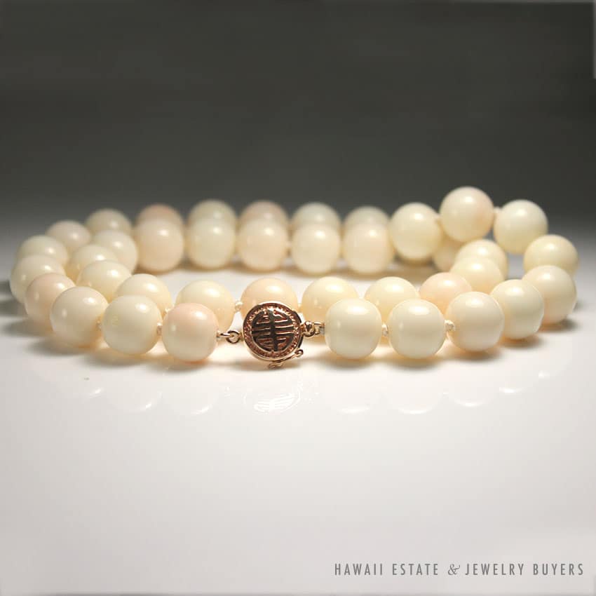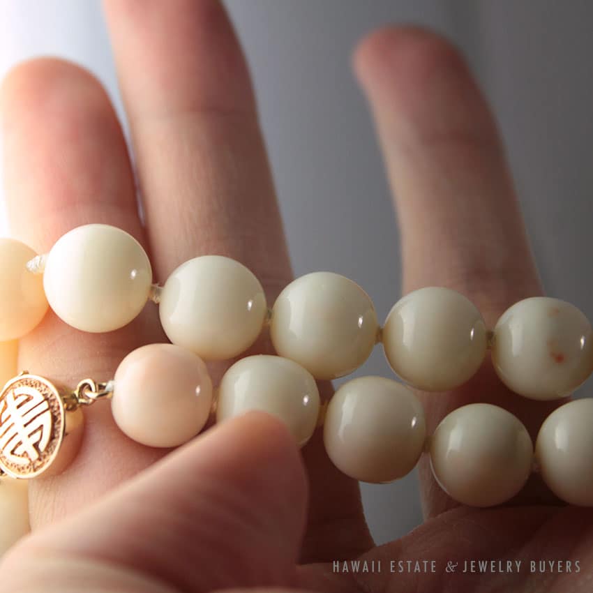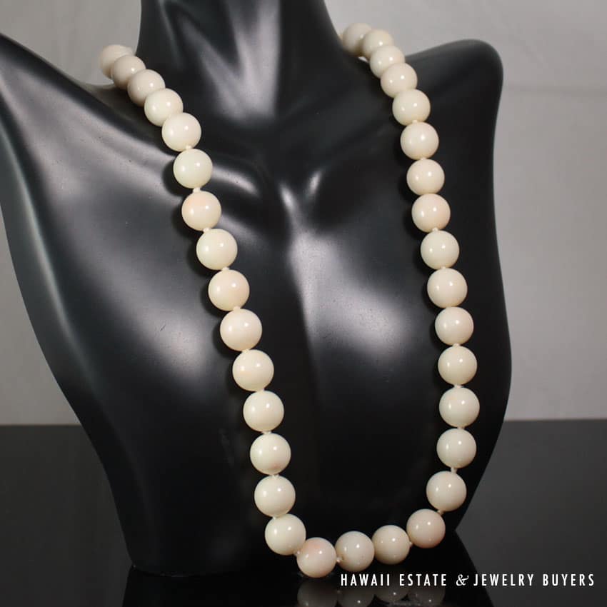 DescriptionMetal: 14K Yellow Gold (clasp)Length: approx. 18″Circa: 1980’sSKU: 1756-01$1,200.00Out of stockSKU: 1756-01Category: Pre-owned Vintage JewelryRelated StylesNatural Lavender Cabochon Pendant$2,300.00GIA Natural No Heat Star Sapphire Diamond Ring$3,900.001.30ct Pear Shaped Diamond and Emerald Twin Antique Platinum Ring$20,000.00Certified Grade A Mottled Green Graduated Bead Necklace$8,000.00