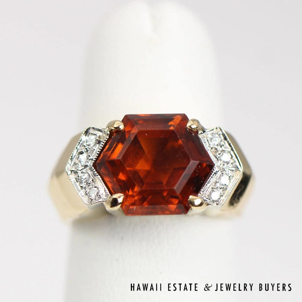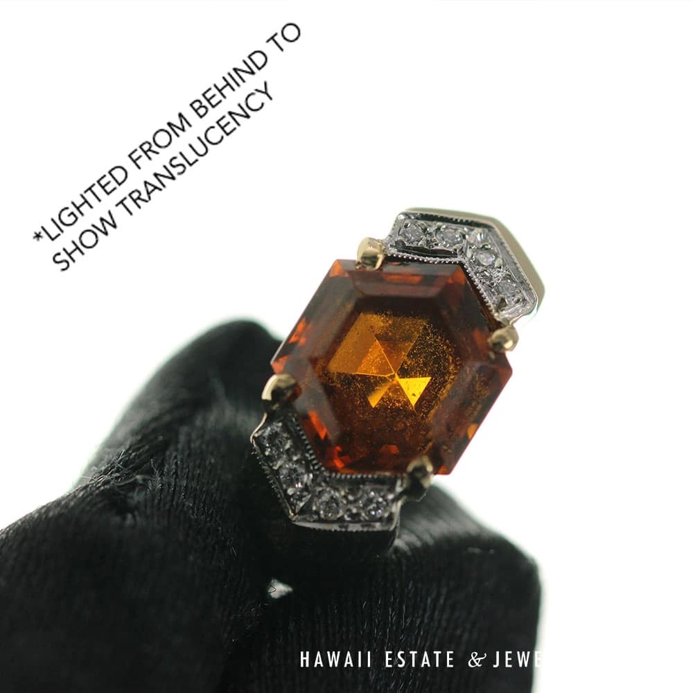 7.9g 14KYG 3ct HEXAGONAL MADEIRA CITRINE AND 0.08ctw DIAMOND RING SIZE 5 (041524-01)