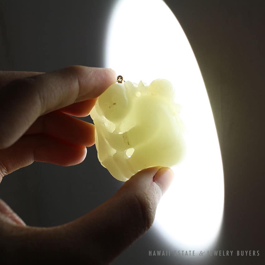 White / Pale green jade known commonly as “Mutton Fat”.