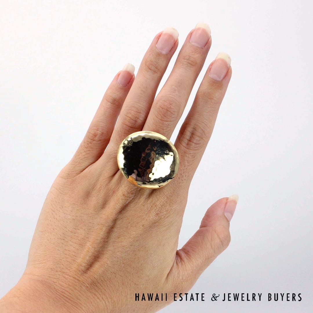 DescriptionTop of ring measures 34 x 30mmNote – we have a few other IPPOLITA Hammered jewelry in our shop!IPPOLITA 17.6g 18KYG HAMMERED OVAL RING SIZE 7.25 (2941-02)$2,100.00Out of stockSKU: 2941-02Category: Pre-owned Vintage JewelryRelated StylesNatural GIA Certified Ruby Diamond Ring$6,800.00GIA Grade A Nephrite Jade Twist Bangle$3,500.001.30ct Pear Shaped Diamond and Emerald Twin Antique Platinum Ring$20,000.00GIA Natural No Heat Star Sapphire Diamond Ring$3,900.00