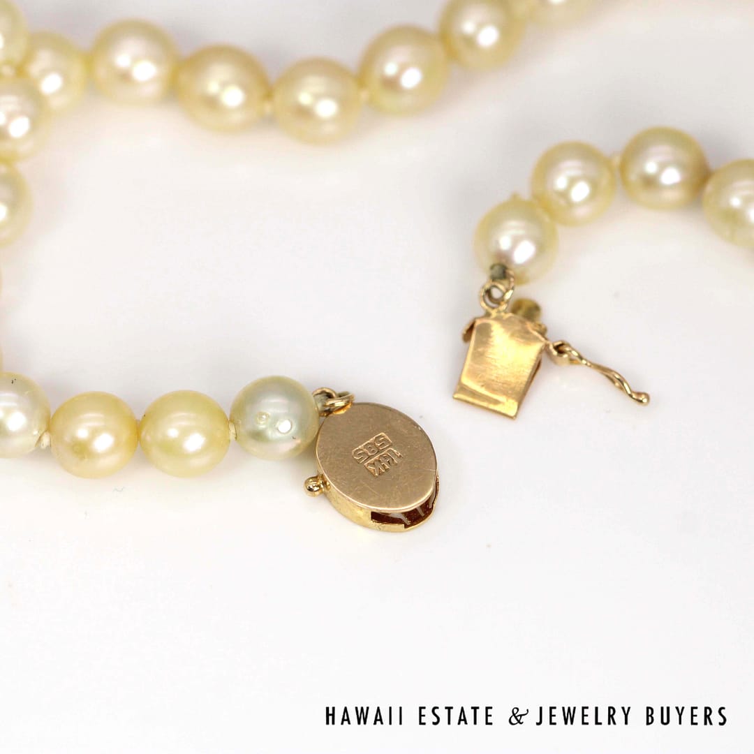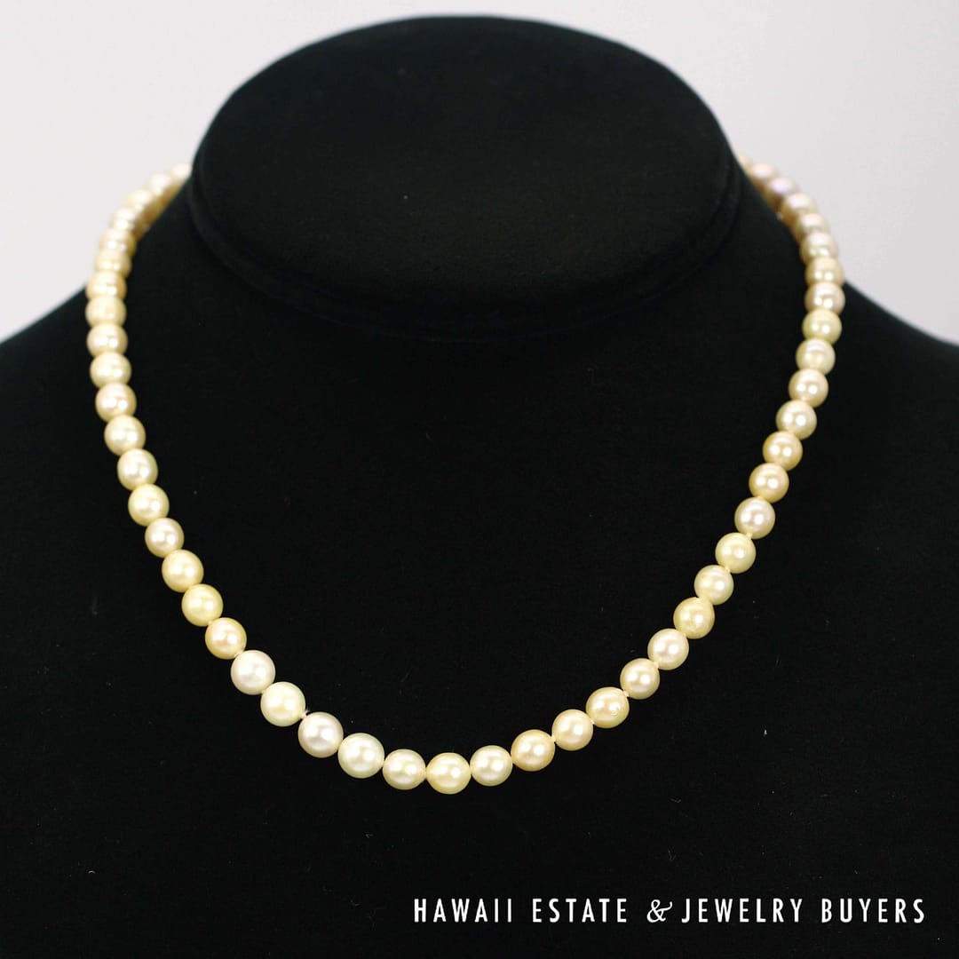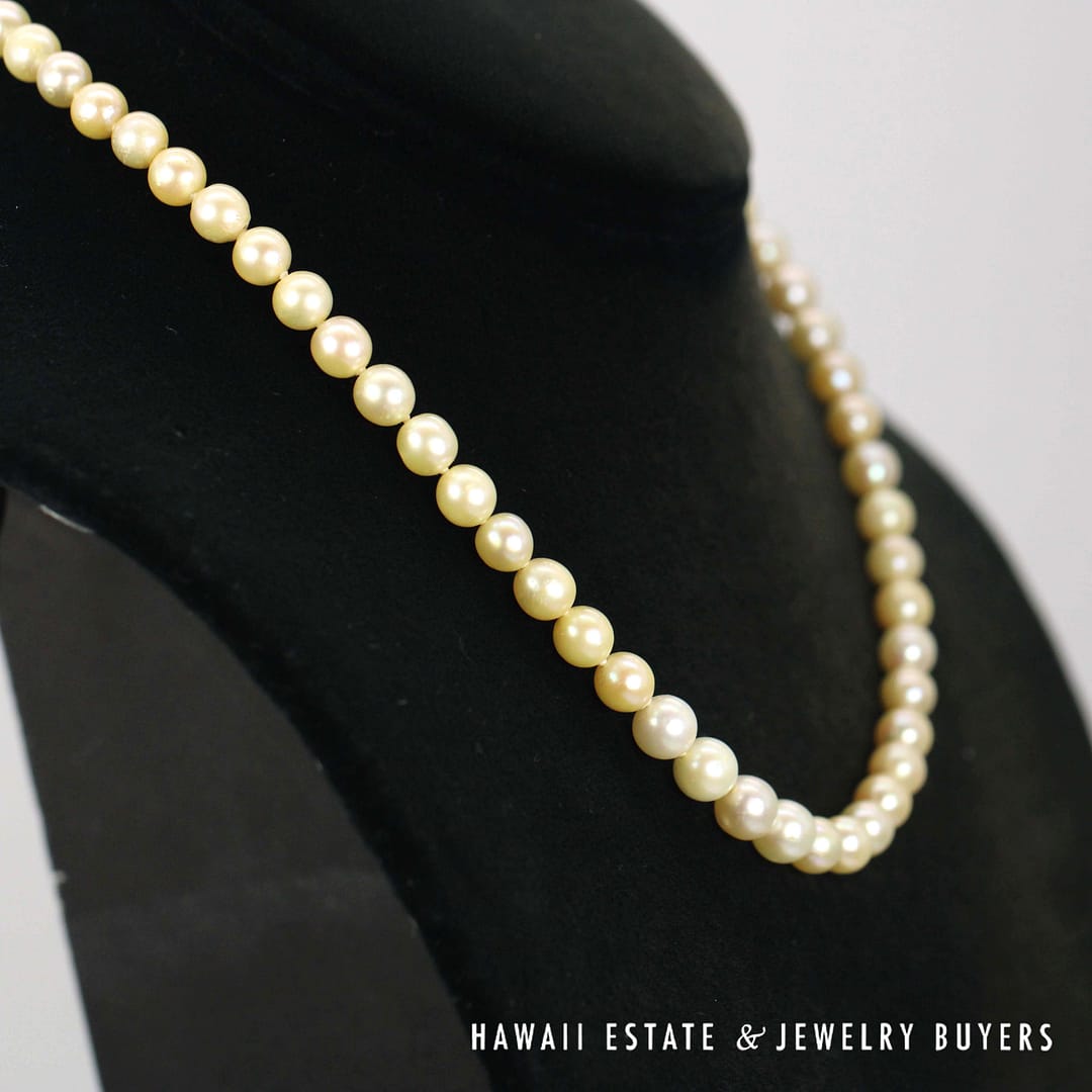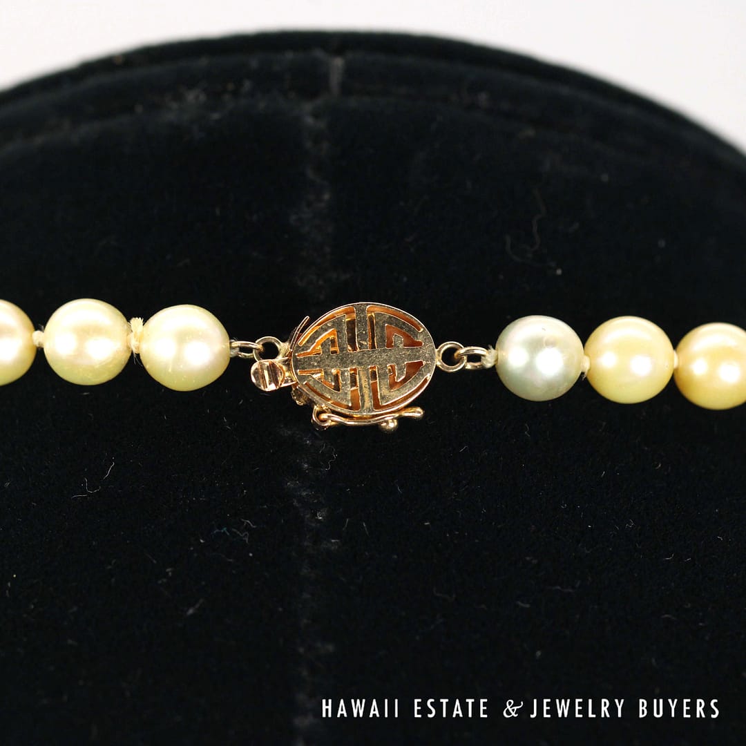 KNOTTED CULTURED PEARL STRAND 16" GRADUATES FROM 5.7-6.7mm WITH 14KYG CLASP (3083-02)