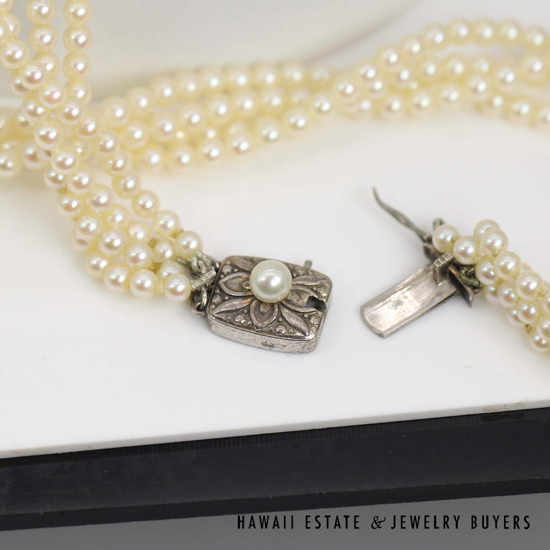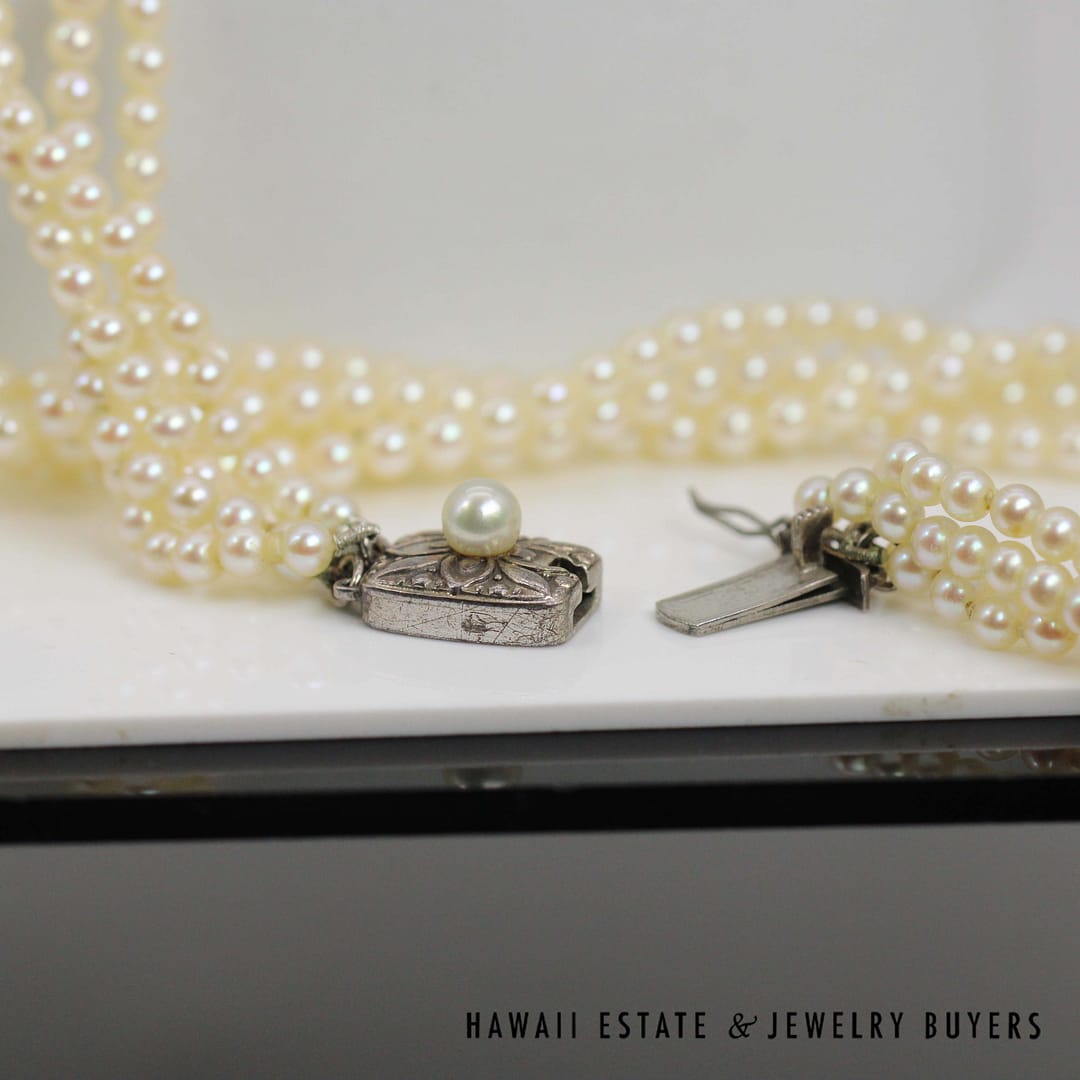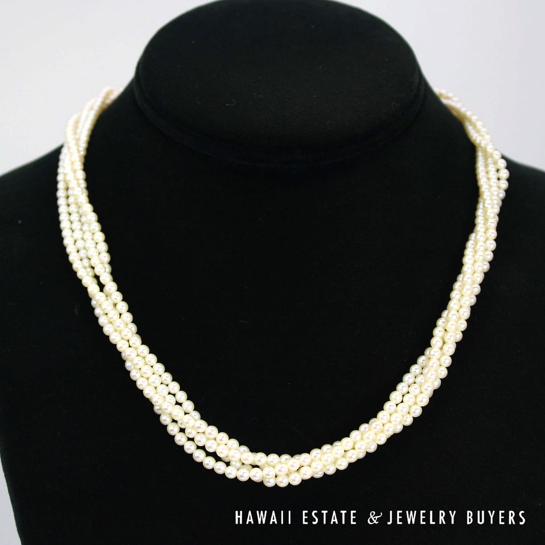 MIKIMOTO CULTURED PEARL NECKLACE 4 STRAND 3mm PEARLS 18" with SILVER CLASP (2899-02)