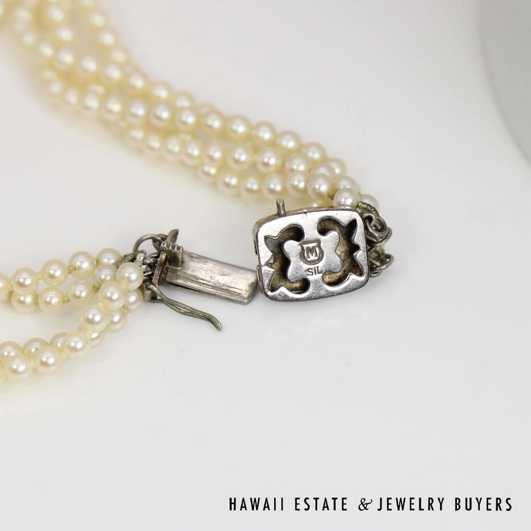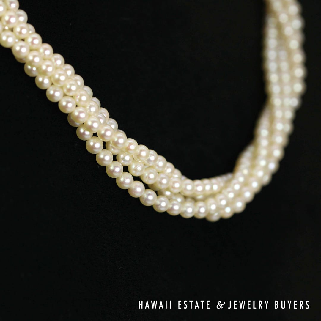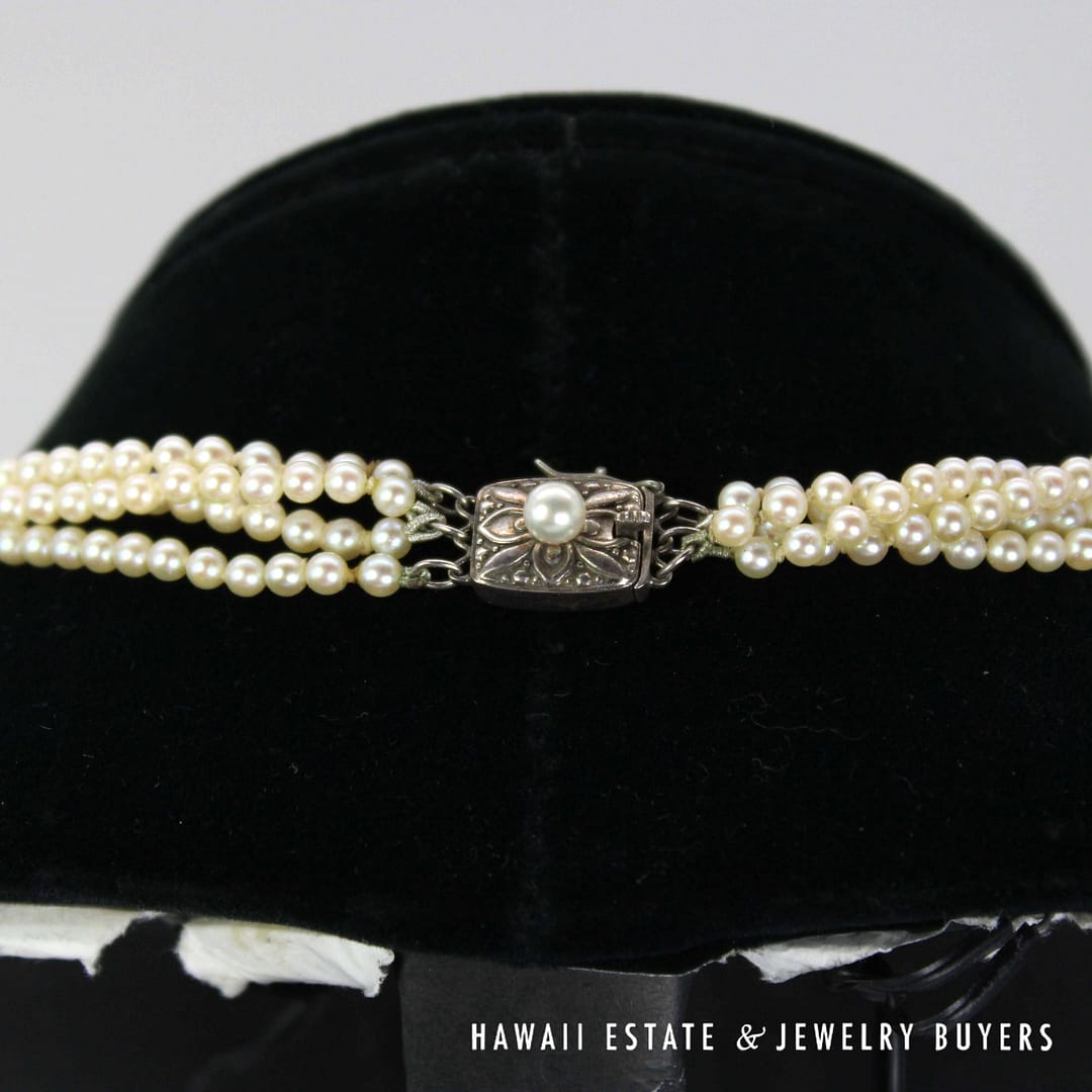 MIKIMOTO CULTURED PEARL NECKLACE 4 STRAND 3mm PEARLS 18" with SILVER CLASP (2899-02)