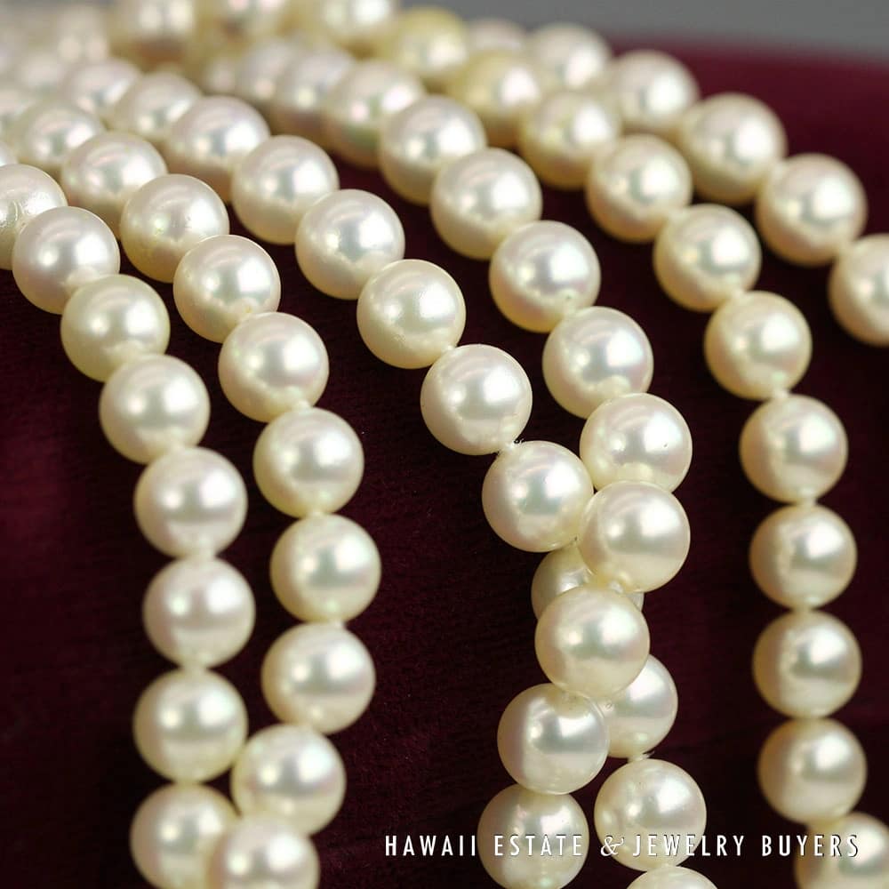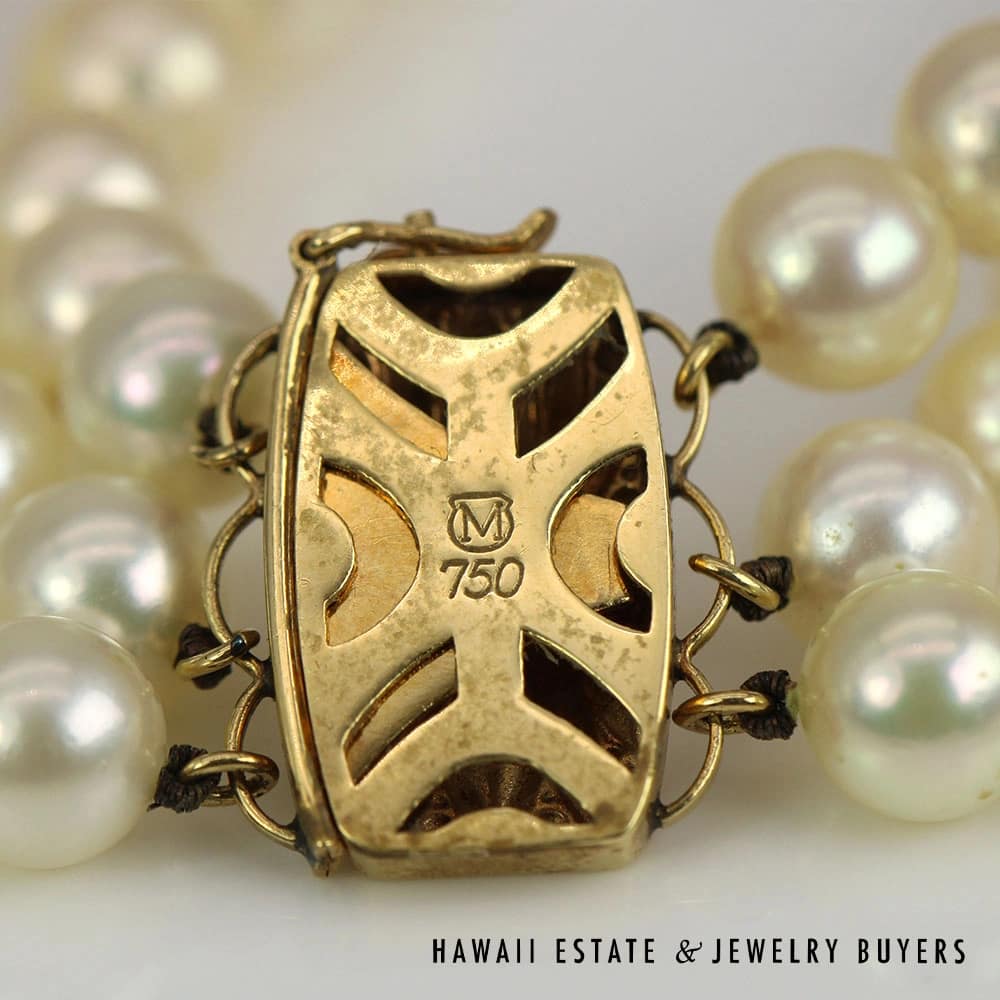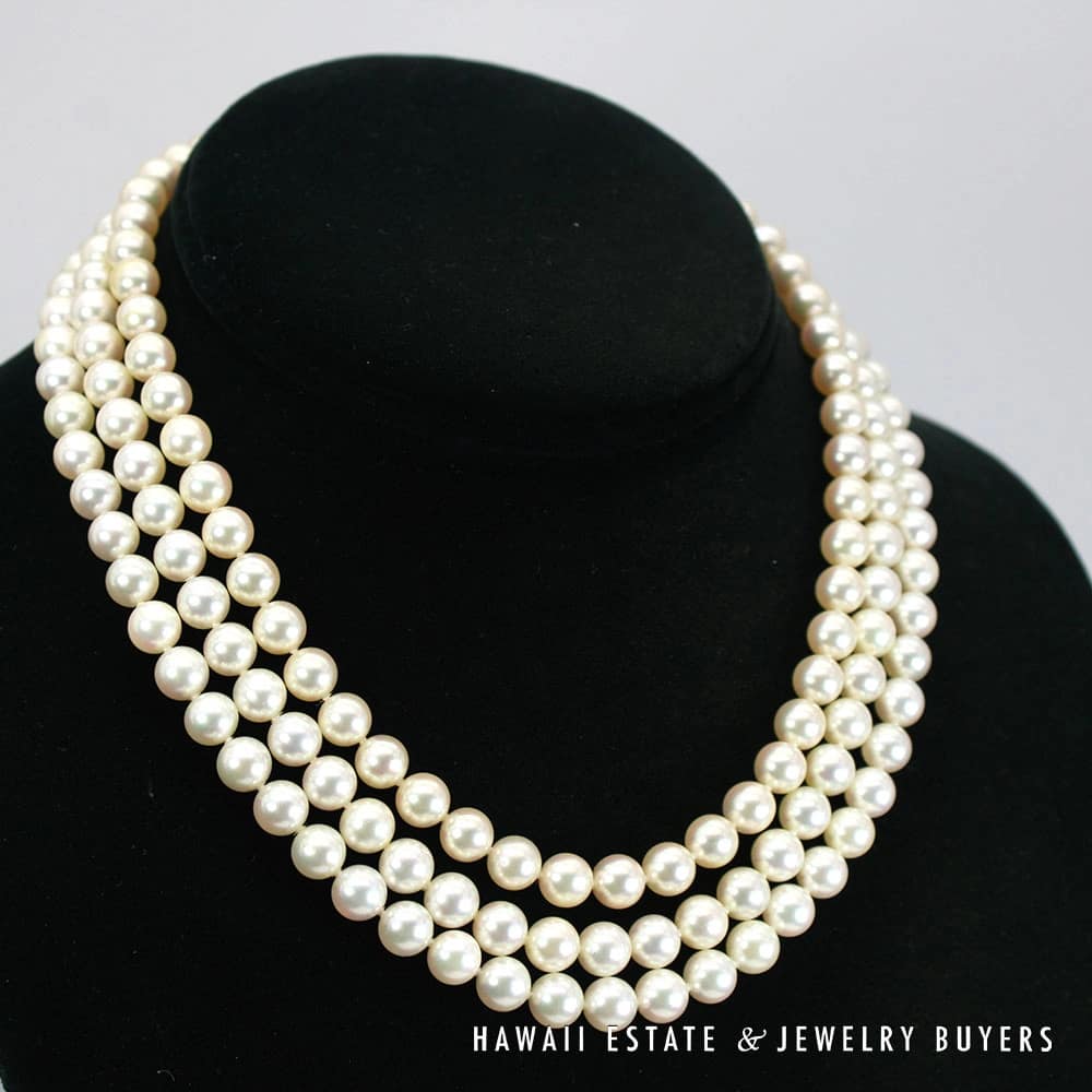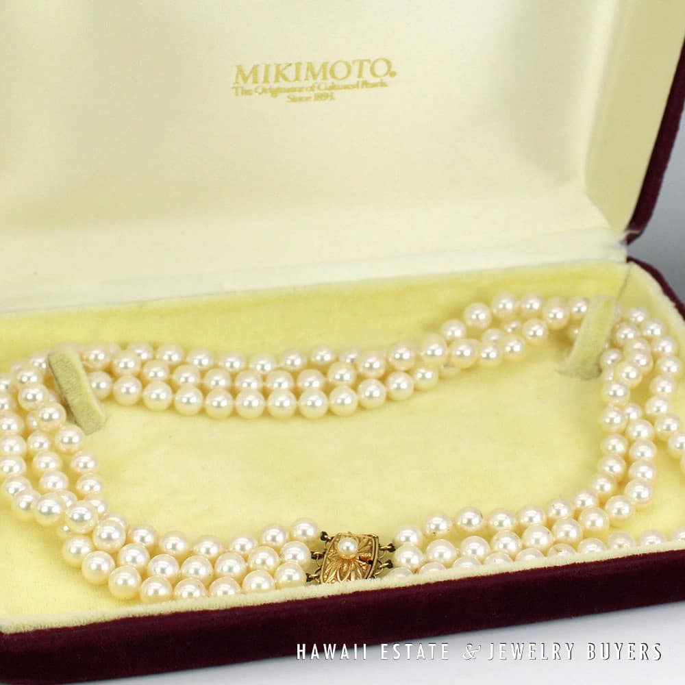 DescriptionPearls are cream white body color with fair luster, light blemish and thick even nacreMIKIMOTO TRIPLE STRAND 6.5-7mm ROUND CULTURED PEARL NECKLACE WITH 18KYG CLASP WITH BOX (3115-10)$1,500.00Out of stockSKU: 3115-10Category: Pre-owned Pearl JewelryRelated StylesGiovanni Corletto 11.7g 18KYG Fine Vintage Enamel & Pearl Brooch$2,500.00Ming’s Double Strand Cultured Pearls 7.5-8mm with 14K White Gold Clasp, 20/21″$1,600.00Mikimoto Pearl Double Strand 14K Yellow Gold Bracelet Size 6.5$1,900.008.1g 14KYG 9.6mm TAHITIAN PEARL with 0.50ctw DIAMONDS RING SIZE 7$2,300.00