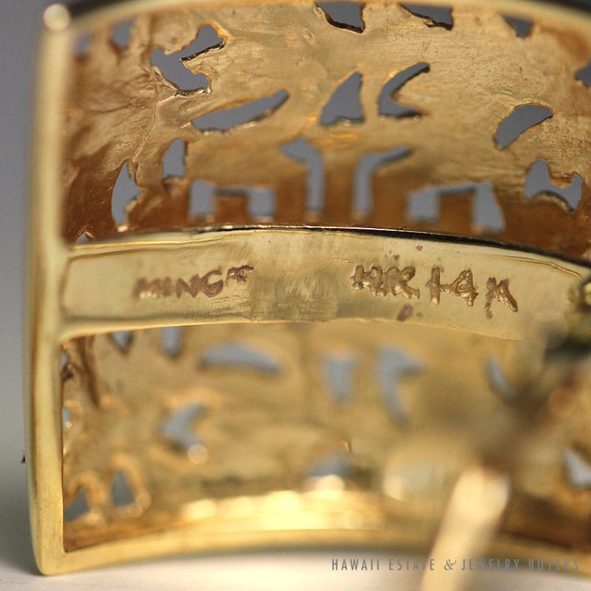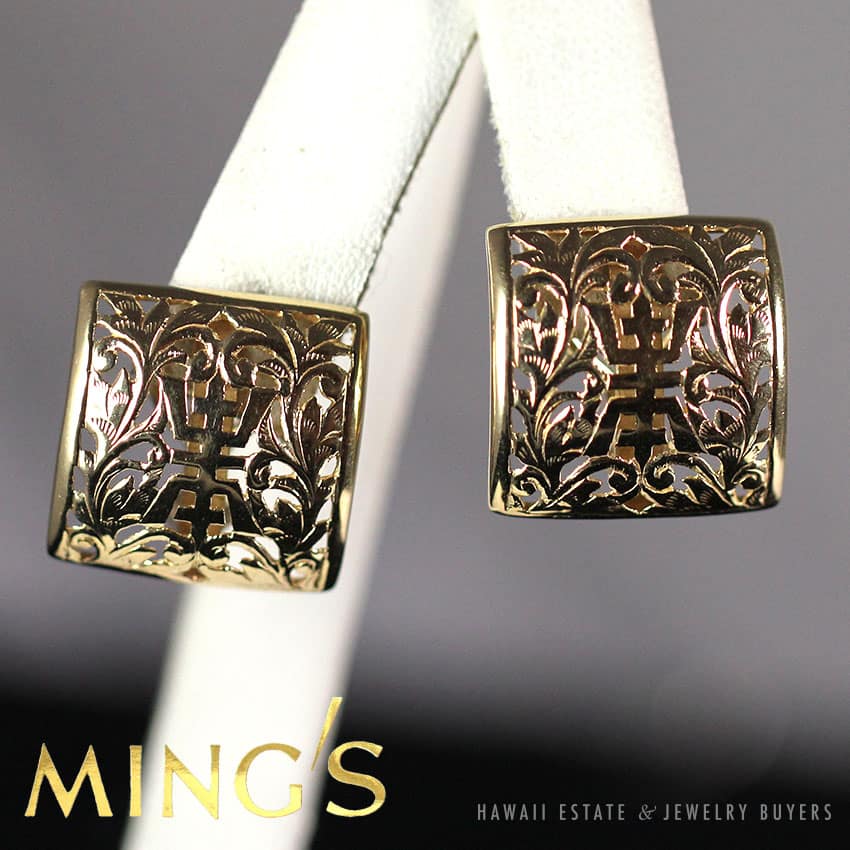 DescriptionSIGNED: MING’S HK 14KALSO SOLD AS SET WITH MATCHING MING’S HAWAII BANGLE BRACELET! $2,820.001 in stockMING'S HAWAII CHINESE 14K YELLOW GOLD SQUARE CLIP EARRINGS quantityAdd to cartMake OfferSKU: PO100-01Category: Pre-owned Ming's JewelryRelated StylesMing’s Hawaii Grey Jade Pearl Set$6,380.00Ming’s Hawaii Pearl Cluster Leaf 14K Ring$1,600.00Ming’s White Jade14K Yellow Gold Set$3,800.00Ming’s Multi Color Jade & Pearl Grid Ring$1,900.00
