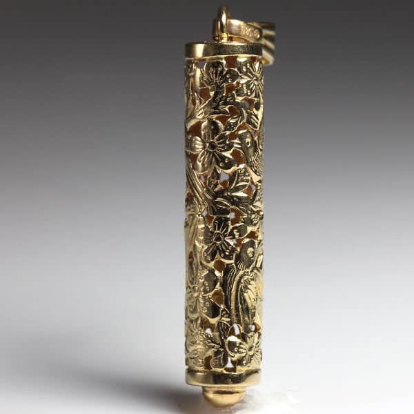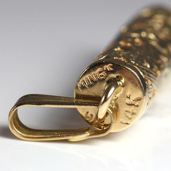 DescriptionBird in Plum motif14K Yellow GoldPierced & Carved Column PendantSigned: Ming’s 14KSKU : 1605-03SOLDSKU: 1605-03Category: Pre-owned Ming's JewelryTags: bird in plum, ming's, ming's hawaii, ring, vintage hawaii, yellow gold, ygRelated StylesMing’s Hawaii Jade Cabochon Pearl Ring$2,975.00Ming’s Multi Color Jade & Pearl Grid Ring$1,900.00Ming’s Hawaii Bi-Color Jade Flower Ring$3,360.00Ming’s Hawaii 14K Yellow Gold Jade Hinged Bangle$14,060.00
