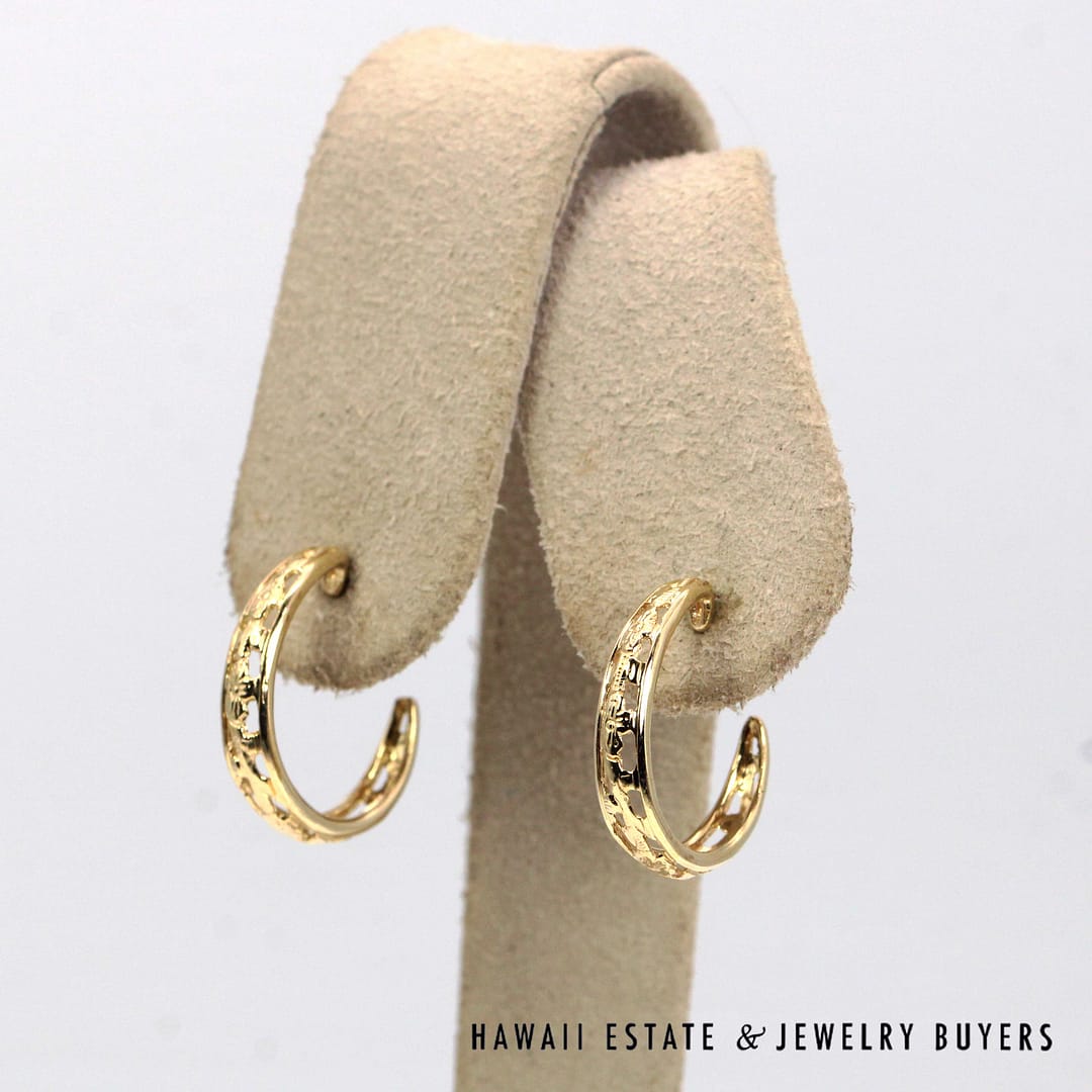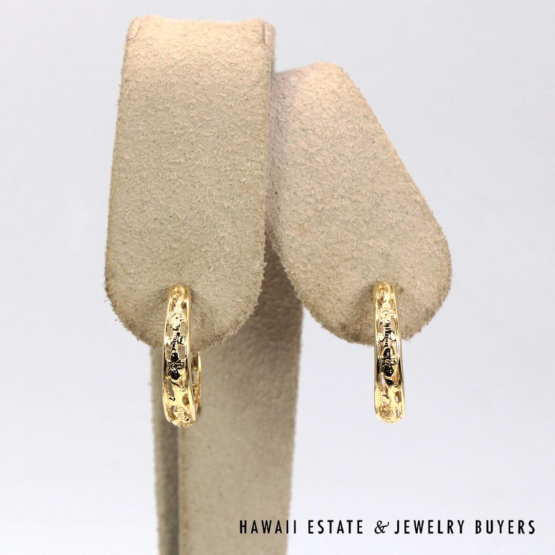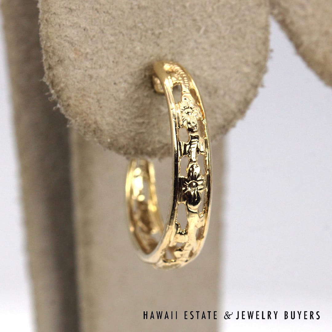 DescriptionVintage Ming's Hawaii 14K yellow gold hoop earrings featuring intricate hand-engraved floral designs, showcasing classic island craftsmanship and timeless elegance.MING'S 1.9g 14KYG SAKURA SMALL HOOP EARRING (3113-04)$790.00Out of stockSKU: 3113-04Categories: Pre-owned Gold jewelry, Pre-owned Ming's JewelryRelated StylesMing’s Hawaii Grey Jade Pearl Set$6,380.00Ming’s Hawaii Oval Carved Flower Large Jade 14K Yellow Gold Ring$2,300.00Ming’s Hawaii Twin Jade Ball Pearl Ring$1,760.00Ming’s Hawaii Green Jade 14K Yellow Gold Hinged Bangle$7,480.00
