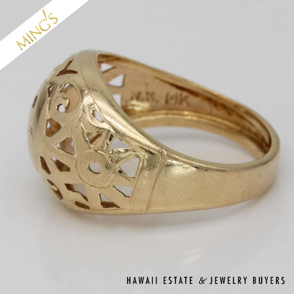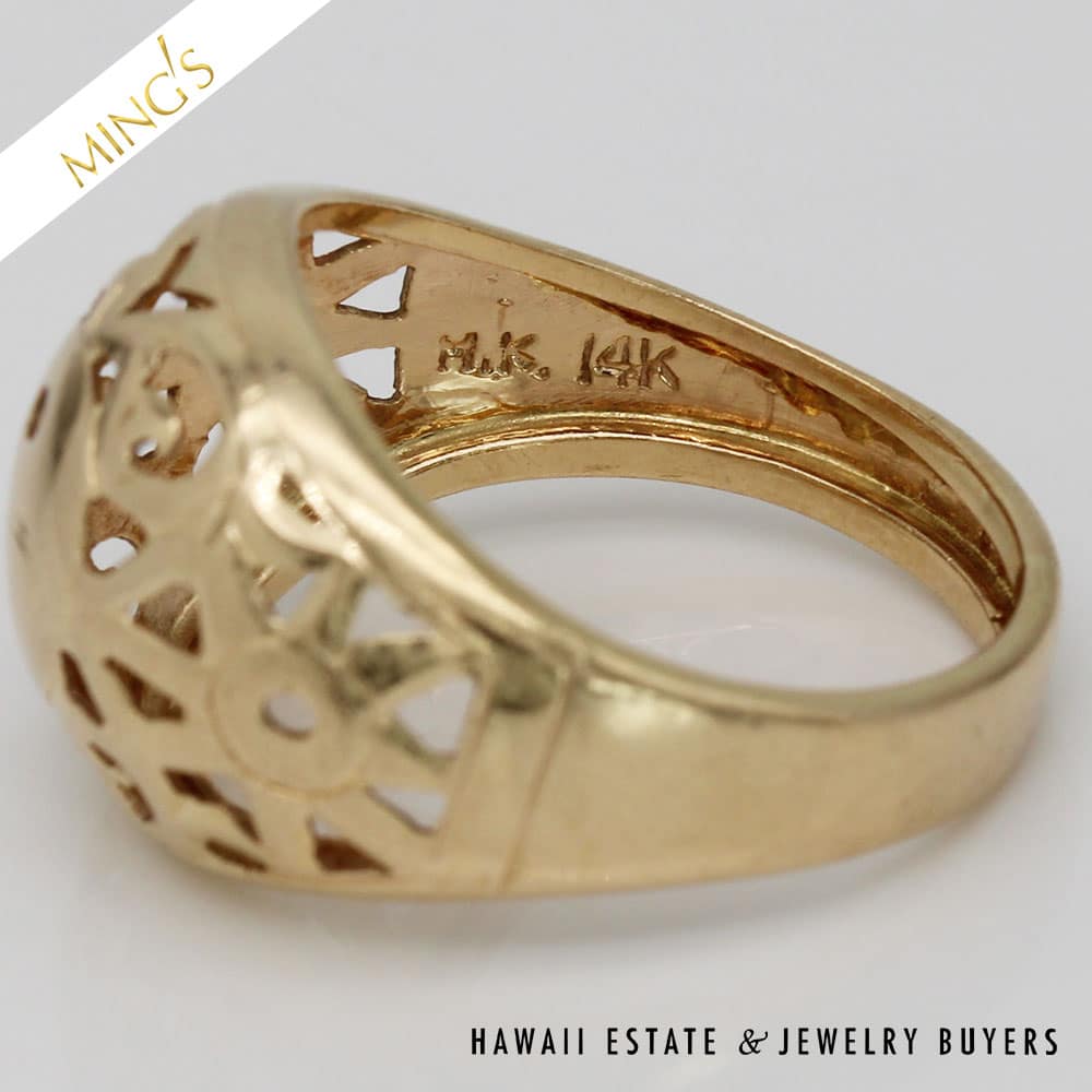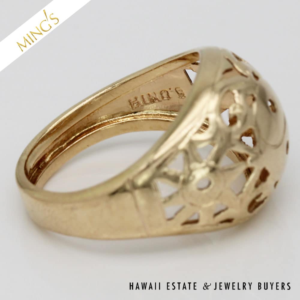 SKU: 2896-03Categories: Pre-owned Gold jewelry, Pre-owned Ming's JewelryTags: hawaii mings, ming's dome ring, MING'S RING, Ming's Yin-Yang, yellow gold ring