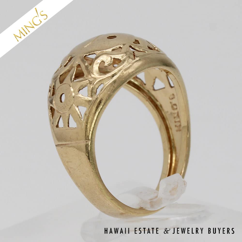 Ring is stamped Ming’s H.K. 14K