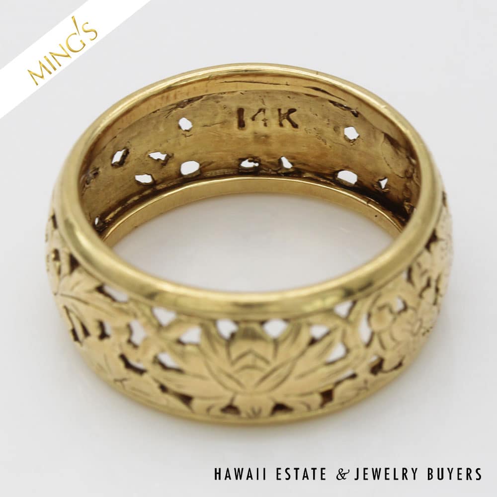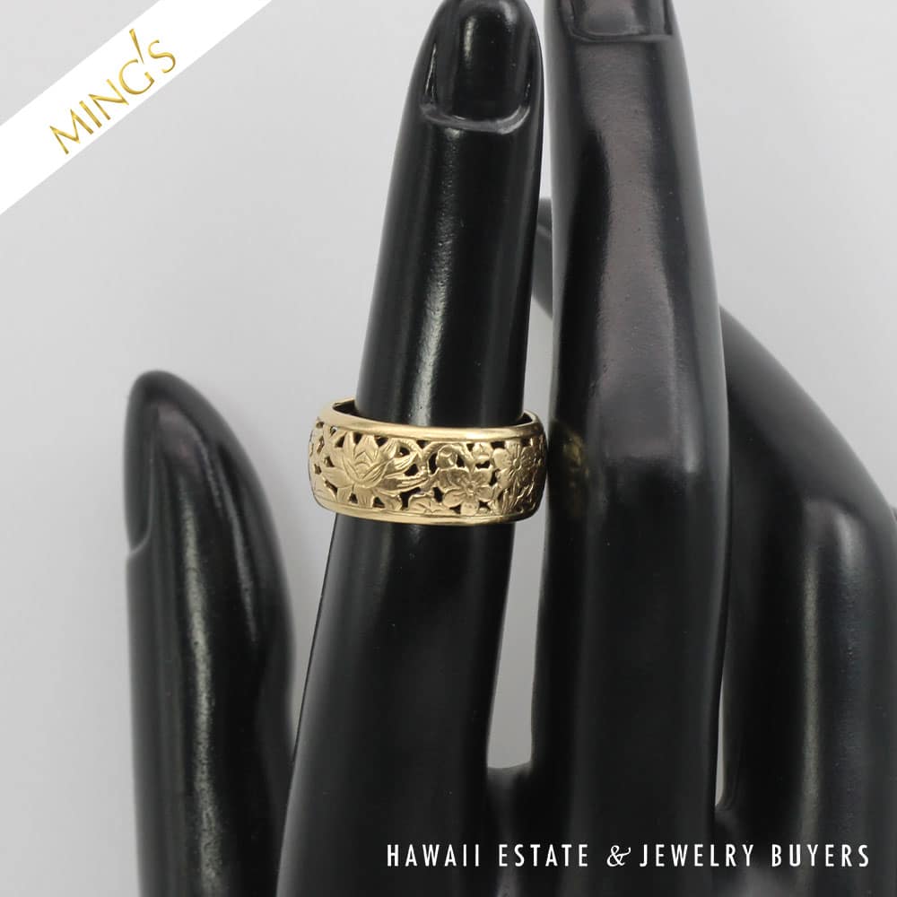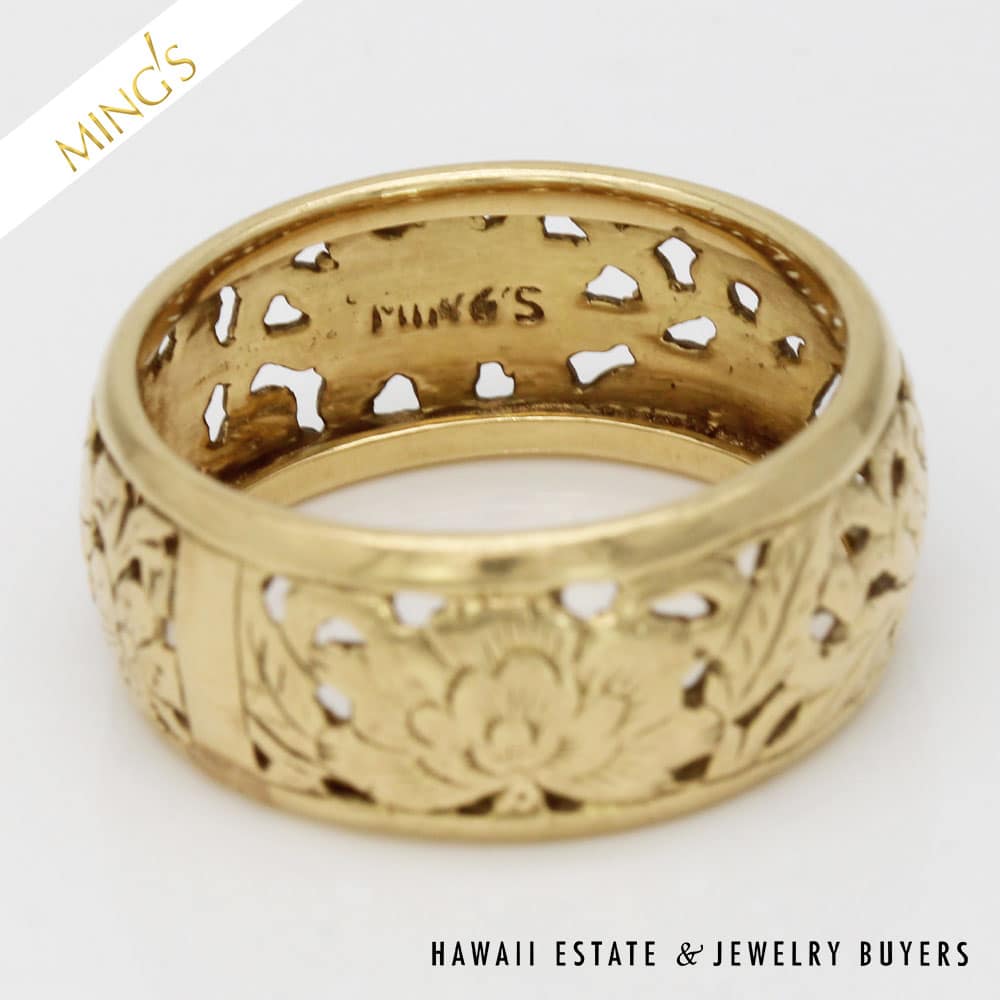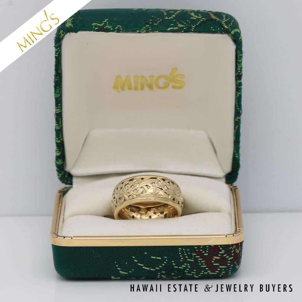 DescriptionMING’S 3.7g 14K YELLOW GOLD FOUR SEASONS 8mm BAND SIZE 6 WITH BOXRing is stamped MING’S H.K. 14K$1,100.00Out of stockSKU: 052323-01Categories: Pre-owned Gold jewelry, Pre-owned Ming's JewelryTags: Ming's 4 seasons, Ming's Four Seasons Band, Ming's Four Seasons Ring, MING'S RING, Ming's yellow gold bandRelated StylesMing’s Hawaii Twin Jade Ball Pearl Ring$1,300.00Ming’s Hawaii Pale Green Twin Jade Ball & White Pearl Ring$1,600.00Ming’s Hawaii Oval Carved Flower Large Jade 14K Yellow Gold Ring$1,800.00Ming’s White Jade14K Yellow Gold Set$3,800.00
