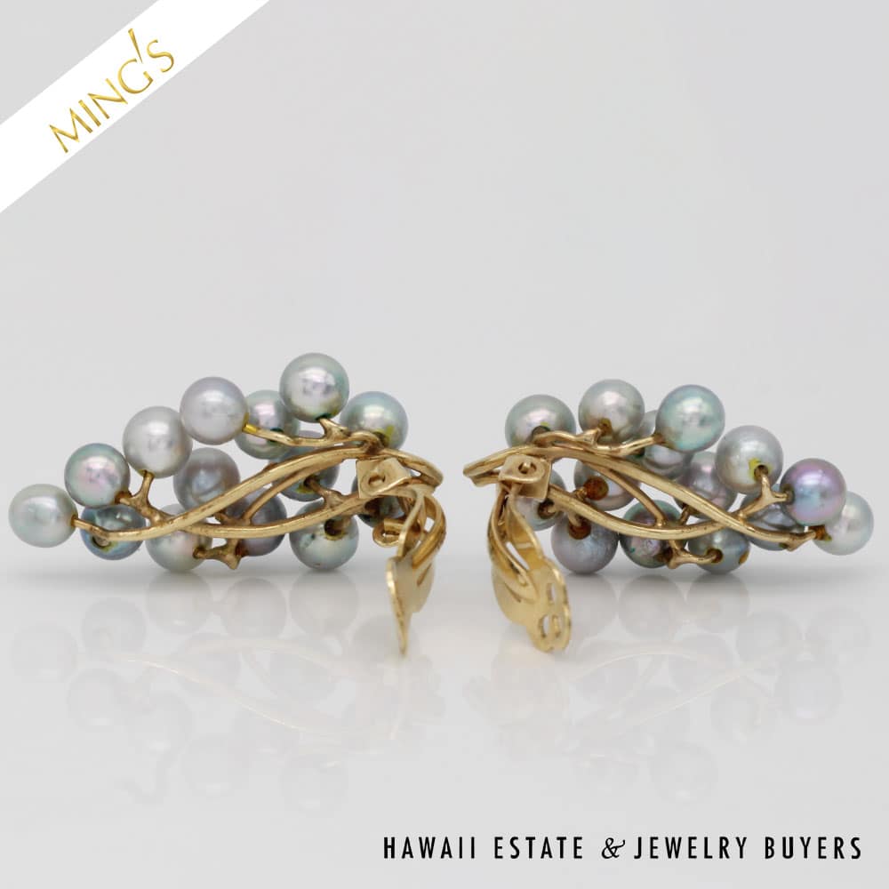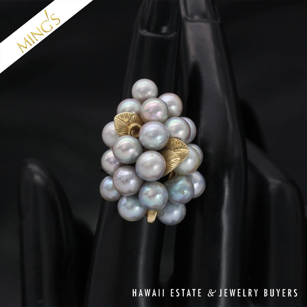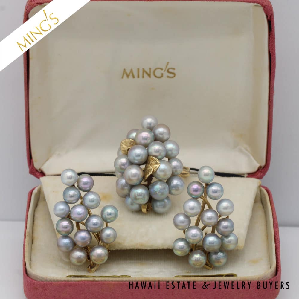 DescriptionMING’S 31.2g 14KYG BLUE PEARL CLUSTER EARRING AND RING SET WITH BOXEarrings are non-pierced and measure approx. 37 x 22mm. Top of ring measures approx. 35 x 25mm and is size 5.75$1,500.00Out of stockSKU: 2207-03Categories: Pre-owned Ming's Jewelry, Pre-owned Pearl JewelryTags: ming's, MING'S BLUE PEARL CLUSTER RING, MING'S BLUE PEARL EARRINGS, MING'S BLUE PEARL SET, MING'S BLUE PEARLSRelated StylesMing’s Hawaii Green Jade 14K Yellow Gold Hinged Bangle$7,480.00Ming’s Hawaii Twin Jade Ball Pearl Ring$1,975.00Ming’s Hawaii Oval Carved Flower Large Jade 14K Yellow Gold Ring$1,800.00Ming’s Hawaii Jade & Pearl 14K Brooch$1,690.00