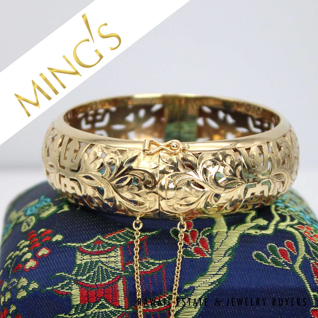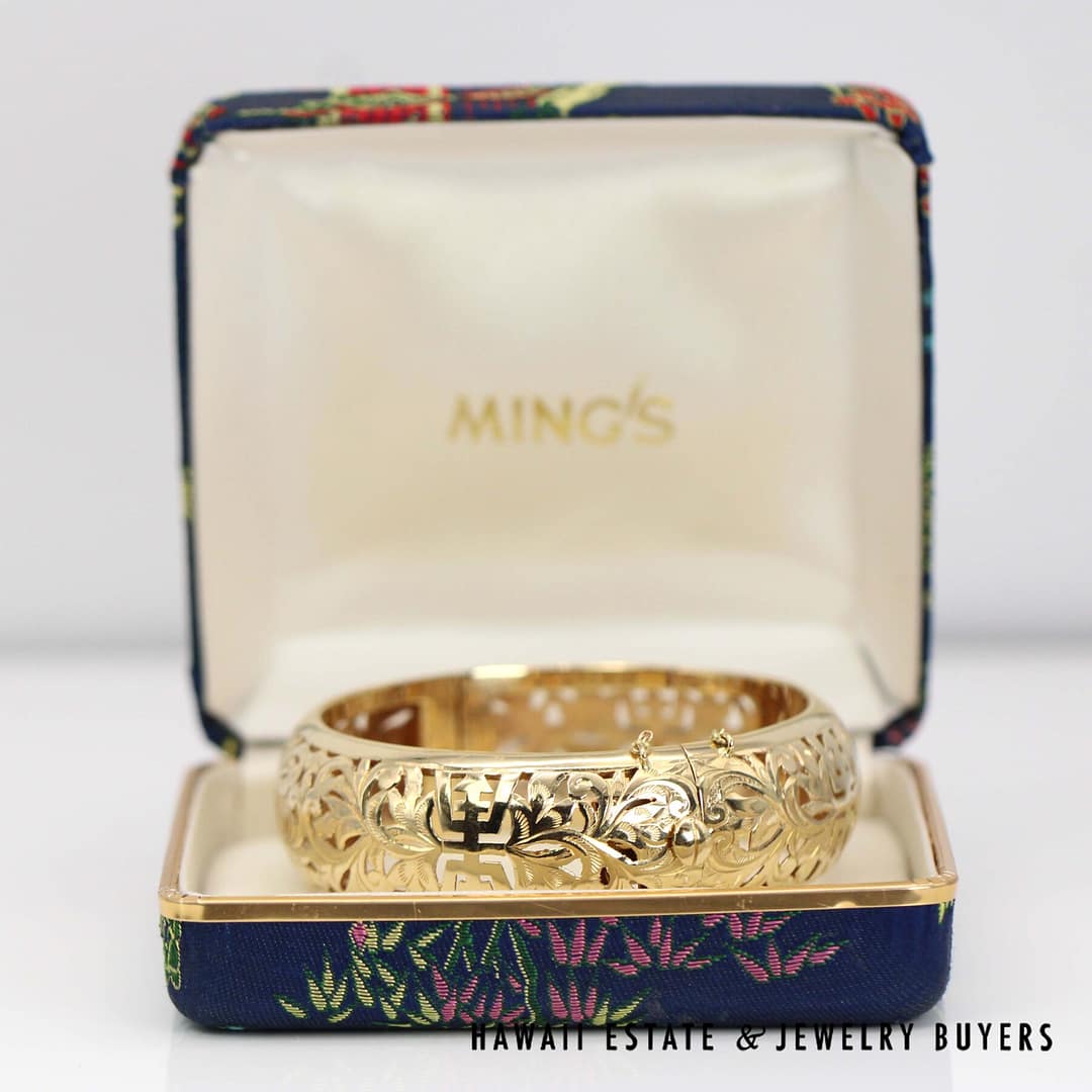 This beautiful Ming's Hawaii bracelet is a must-have for any jewelry collection with a 20mm width and beautiful original box from Ming's Hawaii.