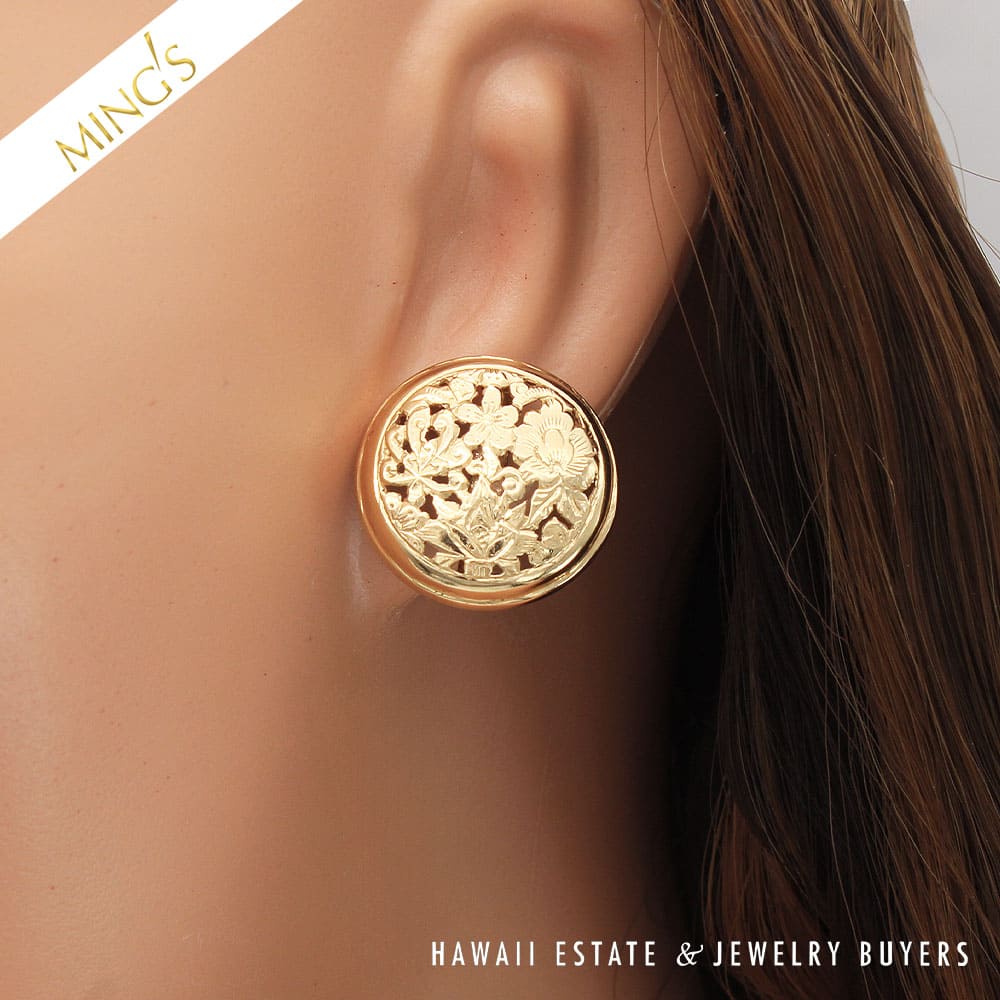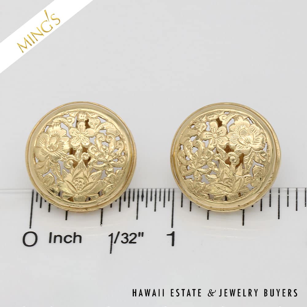 DescriptionMING’S 7.1g 14K YELLOW GOLD FOUR SEASONS 20mm ROUND BUTTON PIERCED EARRINGSEarrings are stamped MING’S 14K H.K.$2,150.001 in stockMING'S 7.1g 14KYG FOUR SEASONS 20mm ROUND BUTTON PIERCED EARRINGS quantityAdd to cartBuy withMake OfferSKU: LT070821-01Categories: Pre-owned gold jewelry, Pre-owned Ming's JewelryTags: ming's, MING'S BUTTON PIERCED EARRINGS, MING'S FOUR SEASONS EARRINGS, Ming's gold earrings, MINGS EARRINGSRelated StylesMing’s Hawaii Pearl Cluster Flower 14K Ring$1,100.00Ming’s Hawaii Pale Green Twin Jade Ball & White Pearl Ring$1,600.00Ming’s Jade Hinged Bangle$3,500.00Ming’s Hawaii Jade & Pearl 14K Brooch$1,690.00
