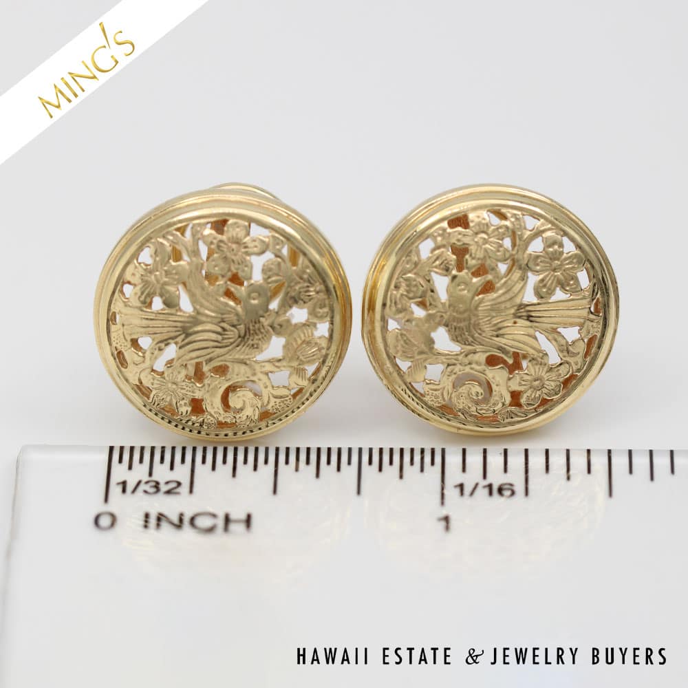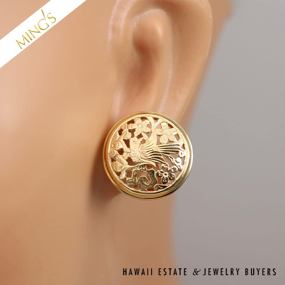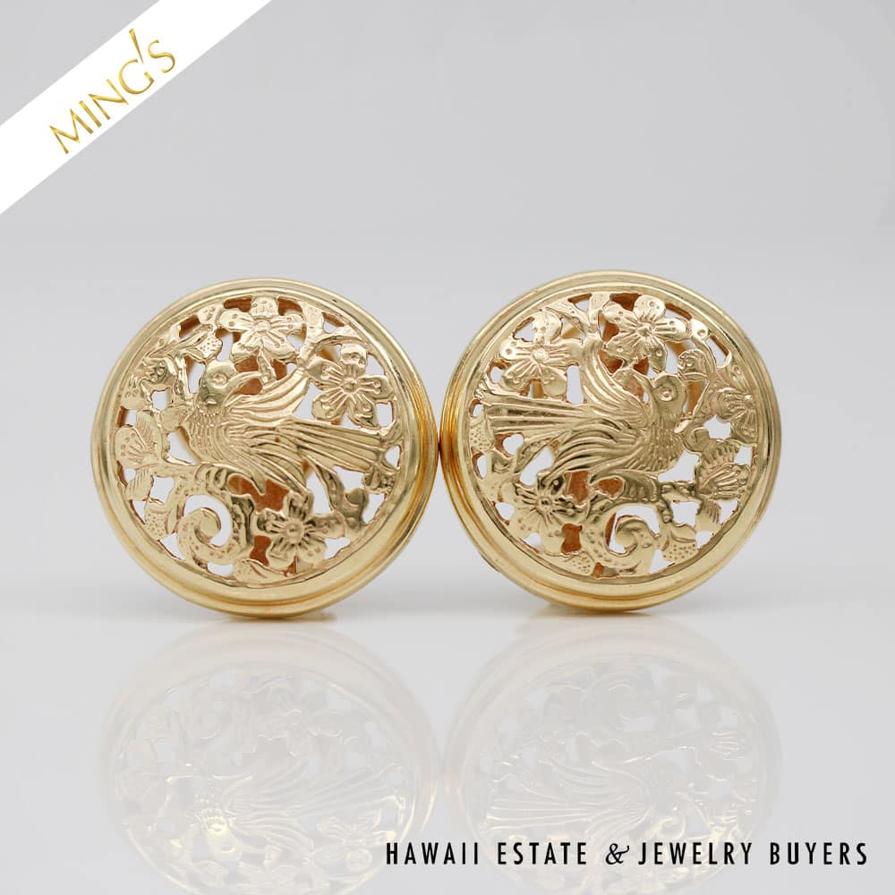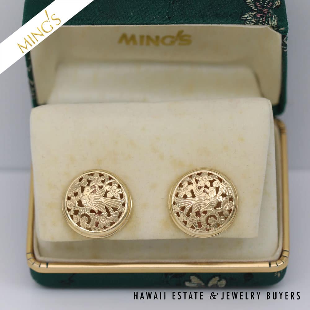 DescriptionMING’S 9.6g 14KYG BIRD IN PLUM 20mm BUTTON EARRING WITH PIERCED OMEGA CLIPS AND BOX$2,900.001 in stockMING'S 9.6g 14KYG BIRD IN PLUM 20mm BUTTON EARRING WITH PIERCED OMEGA CLIPS AND BOX quantityAdd to cartBuy withMake OfferSKU: RS080320-05Categories: Pre-owned gold jewelry, Pre-owned Ming's JewelryTags: 14k yellow gold, GOLD EARRINGS, MINGS EARRINGSRelated StylesMing’s Jade Hinged Bangle$3,500.00Ming’s Lavender Jade & Pearl Ring$3,600.00Ming’s Hawaii Oval Carved Flower Large Jade 14K Yellow Gold Ring$1,800.00Ming’s Hawaii Bi-Color Jade Flower Ring$2,500.00