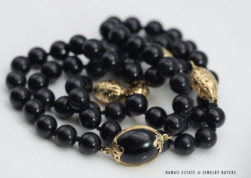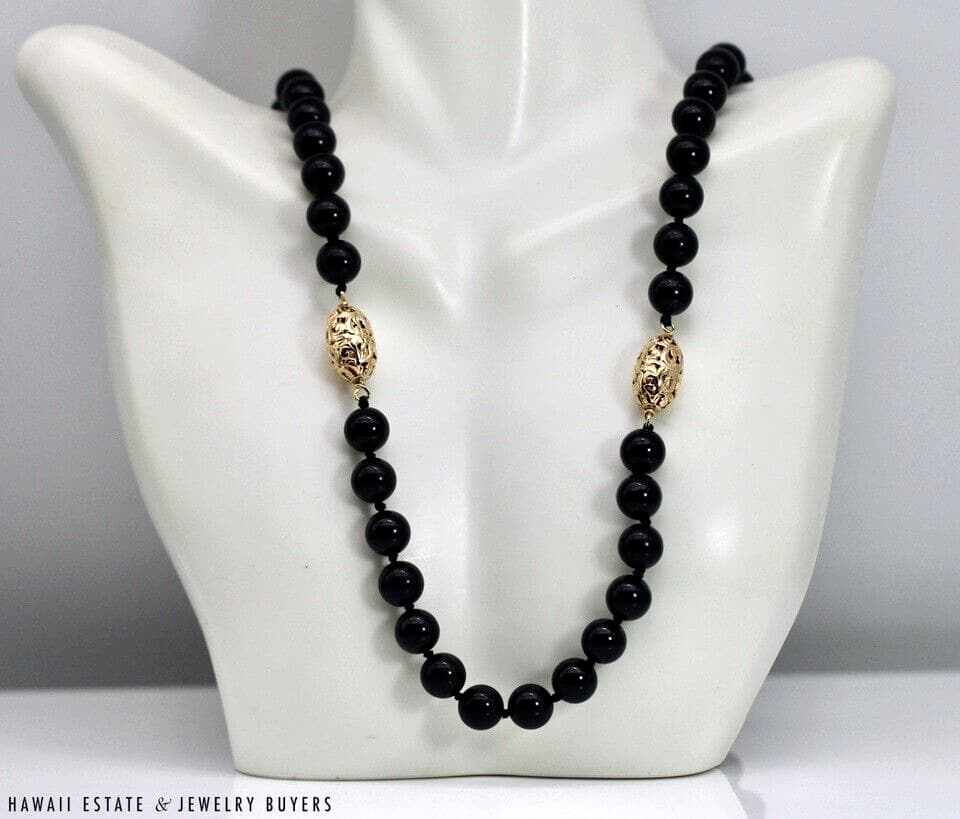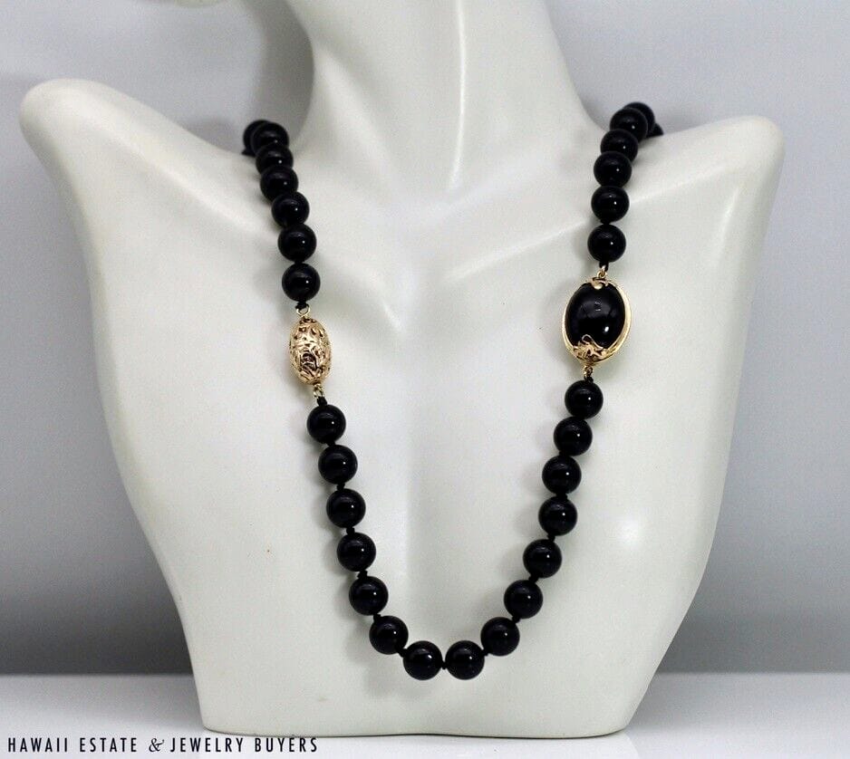 MING'S 77g 14KYG 9mm BLACK ONYX AND OVAL GOLD BEAD 30" NECKLACE (AH071221-02)