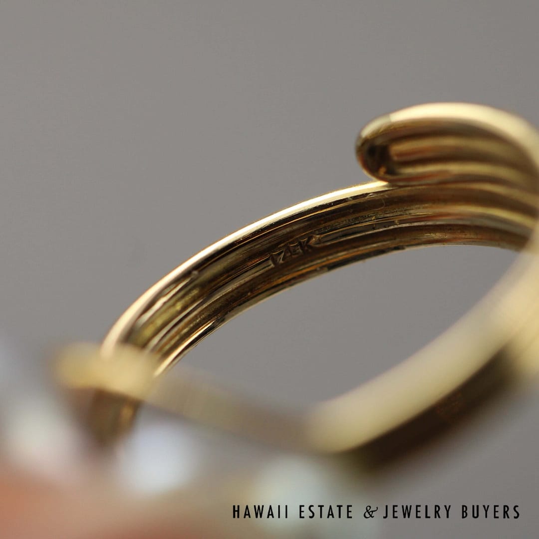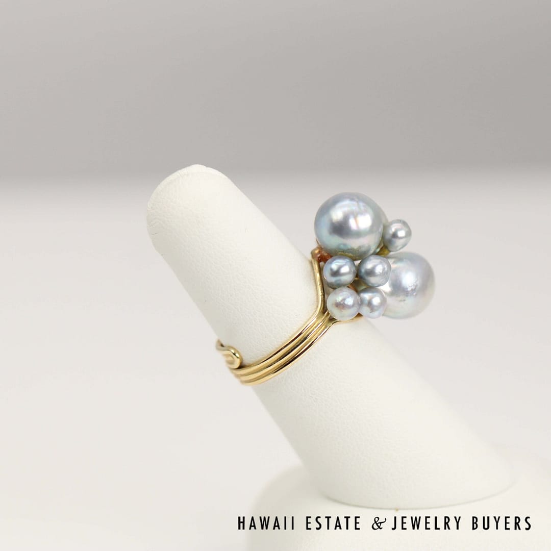 DescriptionBeautiful rare Ming's Hawaii find – Baroque blue pearls cluster on adjustable size 14K Yellow Gold ring. Ring sits currently approx. size 6.5 -7MING'S 5.8g 14KYG BAROQUE BLUE PEARL ADJUSTABLE RING WITH BOX (2955-02)$1,160.001 in stockMing's Baroque Blue Pearl 14K Yellow Gold Adjustable Ring w/ box quantityAdd to cartMake OfferSKU: 2955-02Category: Pre-owned Vintage JewelryRelated StylesGIA CERTIFIED NATURAL GRADE A LAVENDER JADEITE JADE PENDANT W/ DIAMONDS$5,900.00Certified Nephrite Jade White Hollow Cylinder$3,700.00Natural Lavender Cabochon Pendant$2,300.00Antique Victorian Pearl Old Mine Cut Diamond Circle Pin$2,100.00