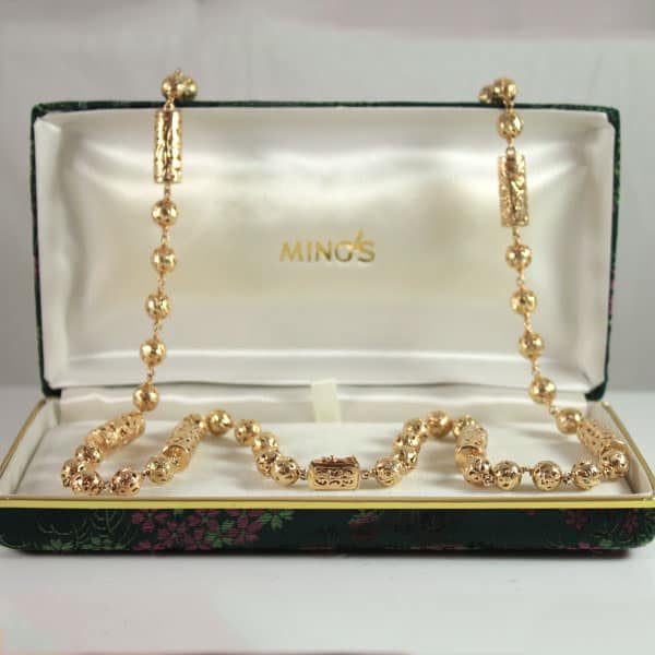 DescriptionSigned, authentic (with original gold brocade box)Metal: 14K Yellow GoldWeight: 65.9gSKU: 1753-01$8,100.00Out of stockSKU: 1753-01Category: Pre-owned Ming's JewelryRelated StylesMing’s Pale Whitish Jade Cabochon Ring$3,925.00Ming’s Hawaii Green Jade 14K Yellow Gold Hinged Bangle$7,480.00Ming’s Black Jade 14K Yellow Gold Set$16,550.00Ming’s Hawaii Grey Jade Pearl Set$6,380.00