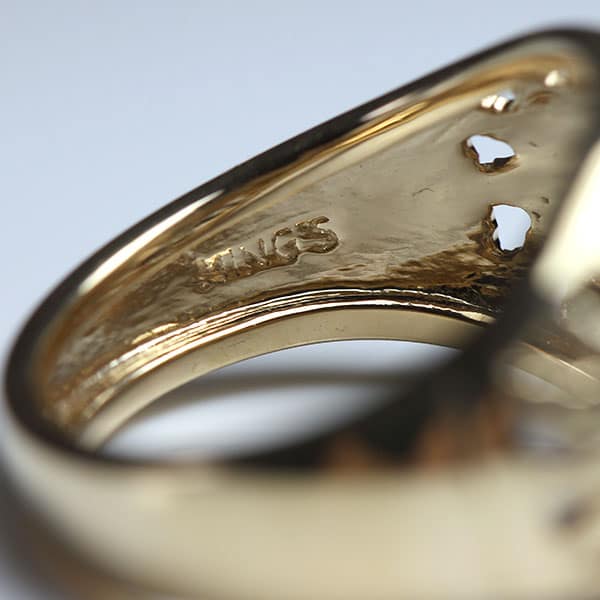 Description14K Yellow GoldPierced & Carved Dome RingSigned: Ming’s 14KRing Size: Approximately 5.5 (resizable for a fee)SKU : 0616-01SOLD$530.00Out of stockSKU: 0616-01Category: Pre-owned Ming's JewelryTags: ming's, ming's hawaii, ring, vintage hawaii, yellow gold, ygRelated StylesMing’s Black Jade 14K Yellow Gold Set$16,550.00Ming’s Jade Hinged Bangle$3,500.00Ming’s Lavender Jade & Pearl Ring$3,600.00Ming’s White Jade14K Yellow Gold Set$3,800.00