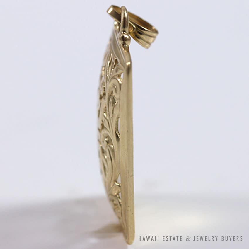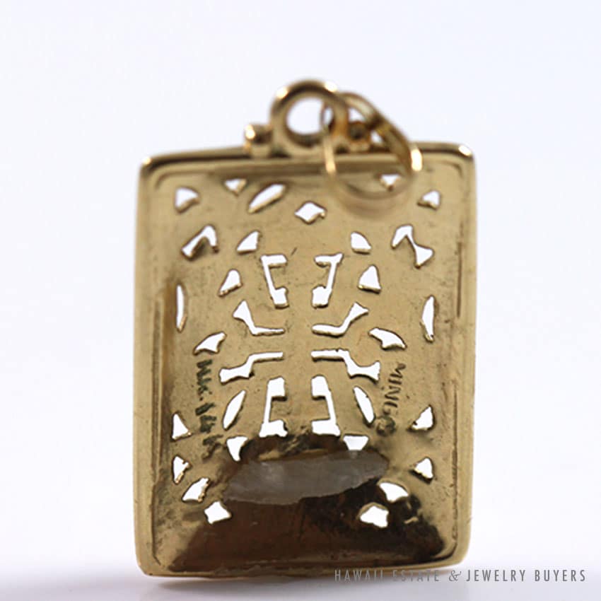 DescriptionBRAND: MING’S HAWAII (singed, authentic)STAMPED: 14KWEIGHT: 3.7gSKU 1908-02$650.00Out of stockSKU: 1908-02Category: Pre-owned Ming's JewelryTags: chinese character, hawaii mings, ming's, ming's hawaii, PENDANT, vintage ming's, yellow gold yellow gold pendantRelated StylesMing’s Lavender Jade & Pearl Ring$3,600.00Ming’s Hawaii Oval Carved Flower Large Jade 14K Yellow Gold Ring$2,300.00Ming’s Hawaii Green Jade 14K Yellow Gold Hinged Bangle$7,480.00Ming’s Hawaii Jade & Pearl 14K Brooch$1,690.00