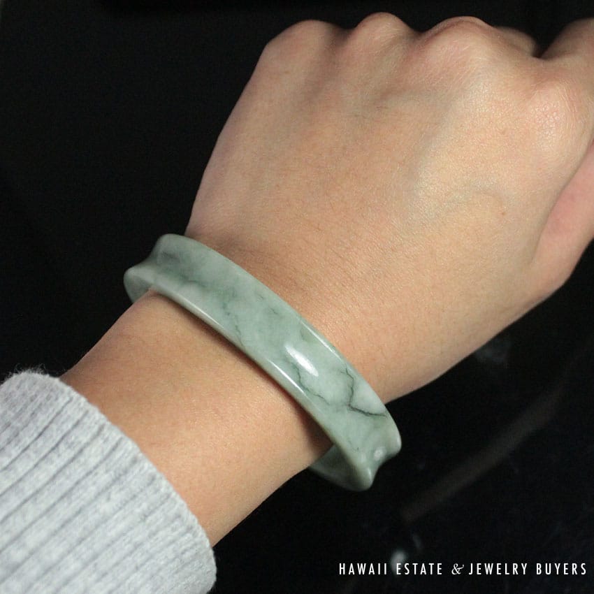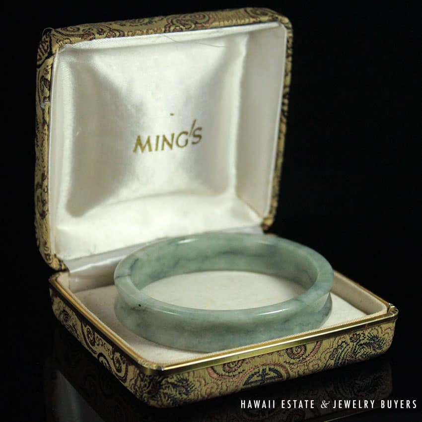 DescriptionComes w/ original Ming’s boxMeasuring approx. 13.09 mm width x 59.82 mm. inside (large) diameterCirca: 1960’s$3,500.001 in stockMing's Hawaii Concave Jade Bangle Bracelet quantityAdd to cartMake OfferSKU: 1845-01Category: Pre-owned Ming's JewelryRelated StylesMing’s Hawaii Pale Green Jade 14K Yellow Gold Bangle Bracelet$6,830.00Ming’s Hawaii Pear Jade Pearl Twin Ring$1,500.00Ming’s Hawaii Pearl & Multi-Color Jade Cluster 14K Ring$3,580.00Ming’s White Jade14K Yellow Gold Set$3,800.00