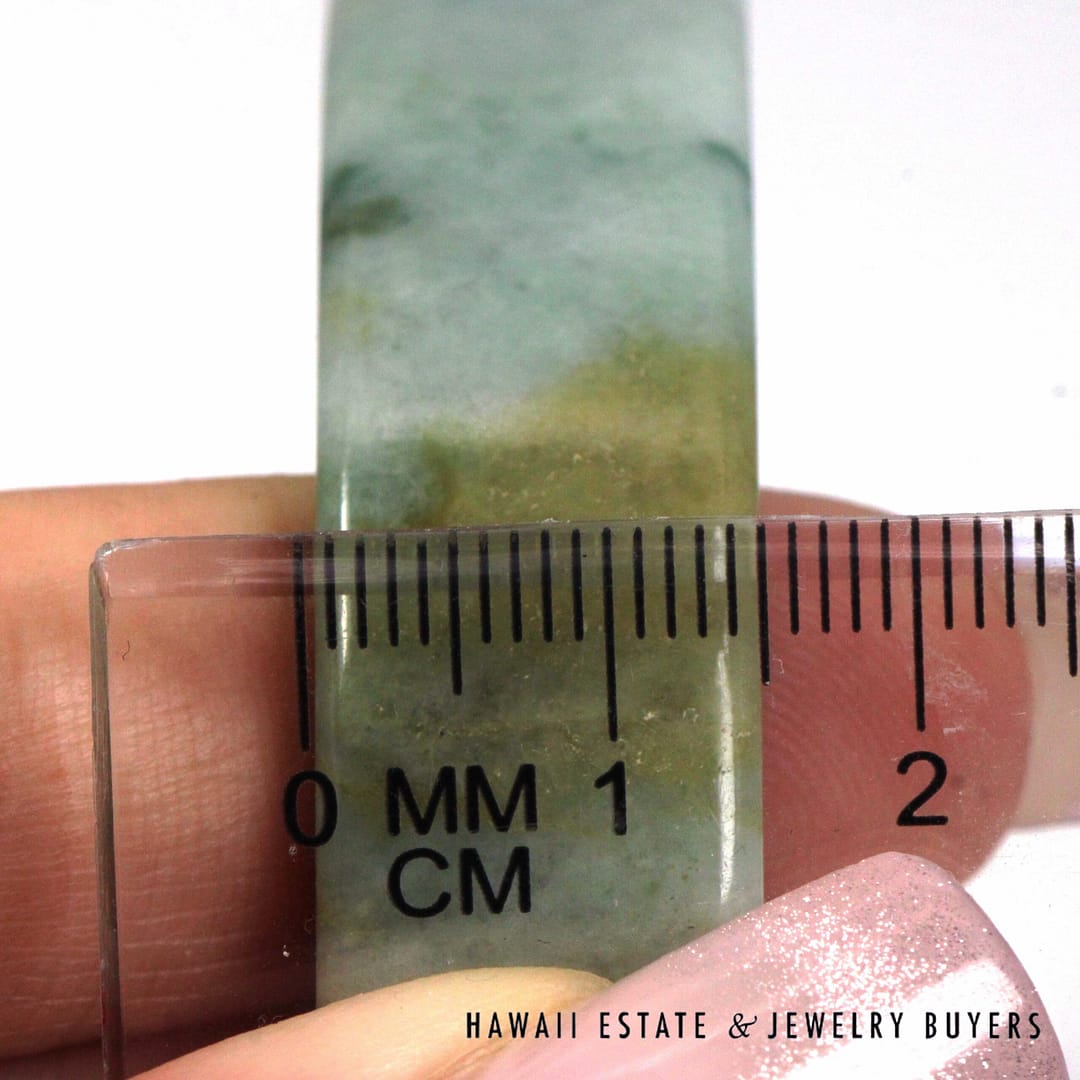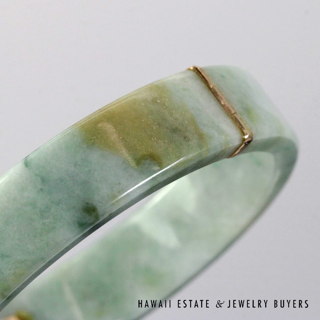 Ming’s Hawaii Green Jade 14K Yellow Gold Hinged Bangle Bracelet Size 7.25