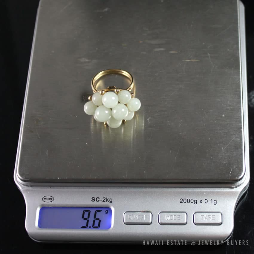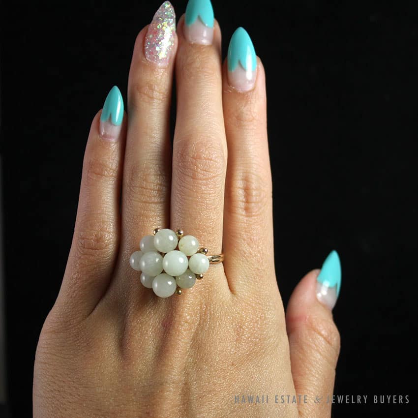 DescriptionMing’s Hawaii 14K jade cluster ringRing Size: approximately 5.5Brand: Ming’s Hawaii Metal: 14K yellow gold SKU: 3128-01$1,050.00Out of stockSKU: 3128-01Category: Pre-owned Ming's JewelryTags: 14k, 14k yellow gold, cluster ring, jade, jade ring, min'g ring, ming, ming's, ming's hawaii, ring, yellow goldRelated StylesMing’s White Jade14K Yellow Gold Set$3,800.00Ming’s Hawaii Pearl Cluster Leaf 14K Ring$1,600.00Ming’s Hawaii Pearl Cluster Flower 14K Ring$1,100.00Ming’s Hawaii Bi-Color Jade Flower Ring$2,500.00