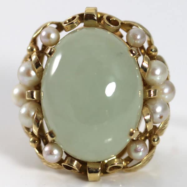 DescriptionSigned: Ming's 14K14K Yellow GoldMing's Jade Large Pale Green Cabochon & White Pearl 14K Yellow Gold Ring (0115-03)$2,975.001 in stockMing's Hawaii Jade Cabochon Pearl Ring quantityAdd to cartMake OfferSKU: 0115-03Category: Pre-owned Ming's JewelryRelated StylesMing’s Hawaii Jade Pale Green/White and Brown Splash 14K Yellow Gold Bangle Bracelet$3,500.00Ming’s Multi Color Jade & Pearl Grid Ring$1,425.00Ming’s Jade Hinged Bangle$3,500.00Ming’s Hawaii Green Jade 14K Yellow Gold Hinged Bangle$7,480.00