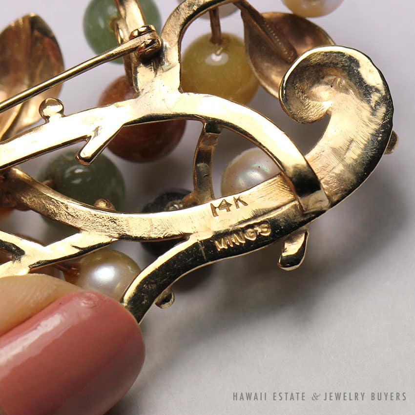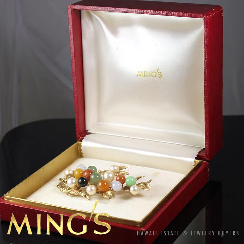 Description$700.00Out of stockSKU: rm01-01Category: Pre-owned Ming's JewelryTags: brooch, hawaii mings, ming's, ming's hawaii, pearl brooch, pearls vintage mings, vintage jewelry, yellow goldRelated StylesMing’s White Jade14K Yellow Gold Set$3,800.00Ming’s Hawaii Twin Jade Ball Pearl Ring$1,975.00Ming’s Black Jade 14K Yellow Gold Set$16,550.00Ming’s Hawaii 14K Yellow Gold Jade Hinged Bangle$7,710.00