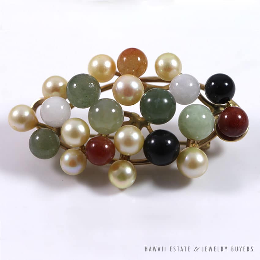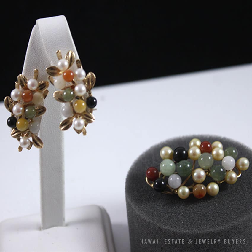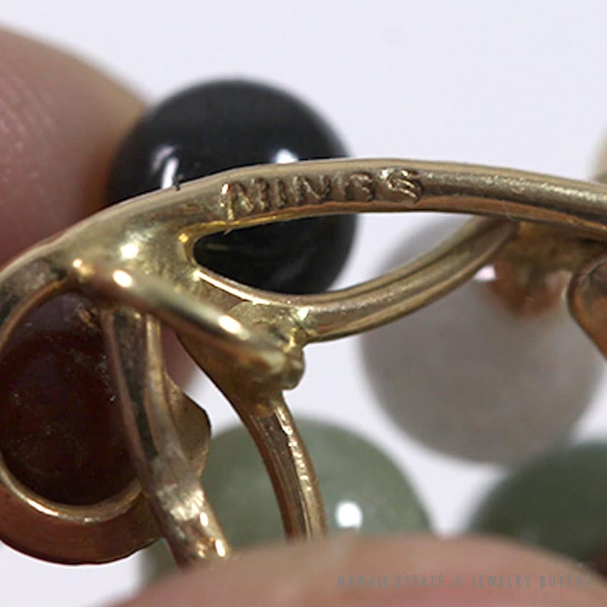 DescriptionBRAND: Ming’s Hawaii (signed, authentic)METAL: 14K yellow goldSKU 0722-07SOLD$1,150.00Out of stockSKU: 0722-07Category: Pre-owned Ming's JewelryTags: brooch, earrings, hawaii mings, jade, ming's, ming's hawaii, pearl, vintage ming'sRelated StylesMing’s Green Jade Cabochon Flower Border Ring$1,800.00Ming’s Multi Color Jade & Pearl Grid Ring$1,900.00Ming’s Black Jade 14K Yellow Gold Set$16,550.00Ming’s Hawaii Twin Jade Ball Pearl Ring$2,620.00
