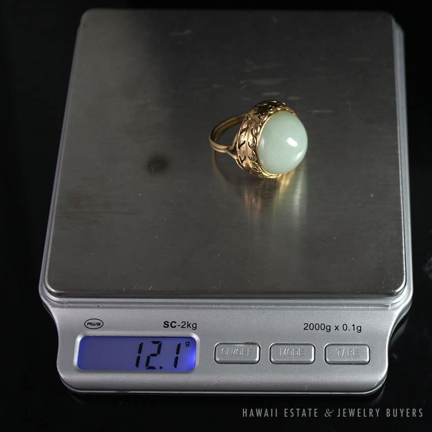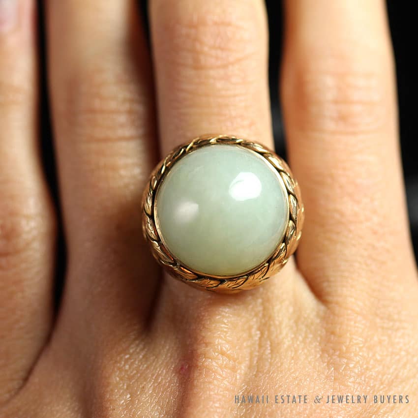 DescriptionMing’s Hawaii 14K jade ring RingSize: approximately 5.5Brand: Ming’s HawaiiMetal: 14K yellow goldSKU: 3128-02$3,000.001 in stockMING'S HAWAII LARGE ROUNDED JADE CABOCHON 14K YELLOW GOLD RING (SZ. 5.5) quantityAdd to cartMake OfferSKU: 3128-02Category: Pre-owned Ming's JewelryTags: 14k yellow gold, cabochon, green jade, jade, ming, ming's, ming's hawaii, MING'S RING, ring, yellow goldRelated StylesMing’s Hawaii Pale Green Twin Jade Ball & White Pearl Ring$1,600.00Ming’s Hawaii Pearl & Multi-Color Jade Cluster 14K Ring$2,650.00Ming’s Hawaii Pearl Cluster Leaf 14K Ring$1,600.00Ming’s Multi Color Jade & Pearl Grid Ring$1,425.00