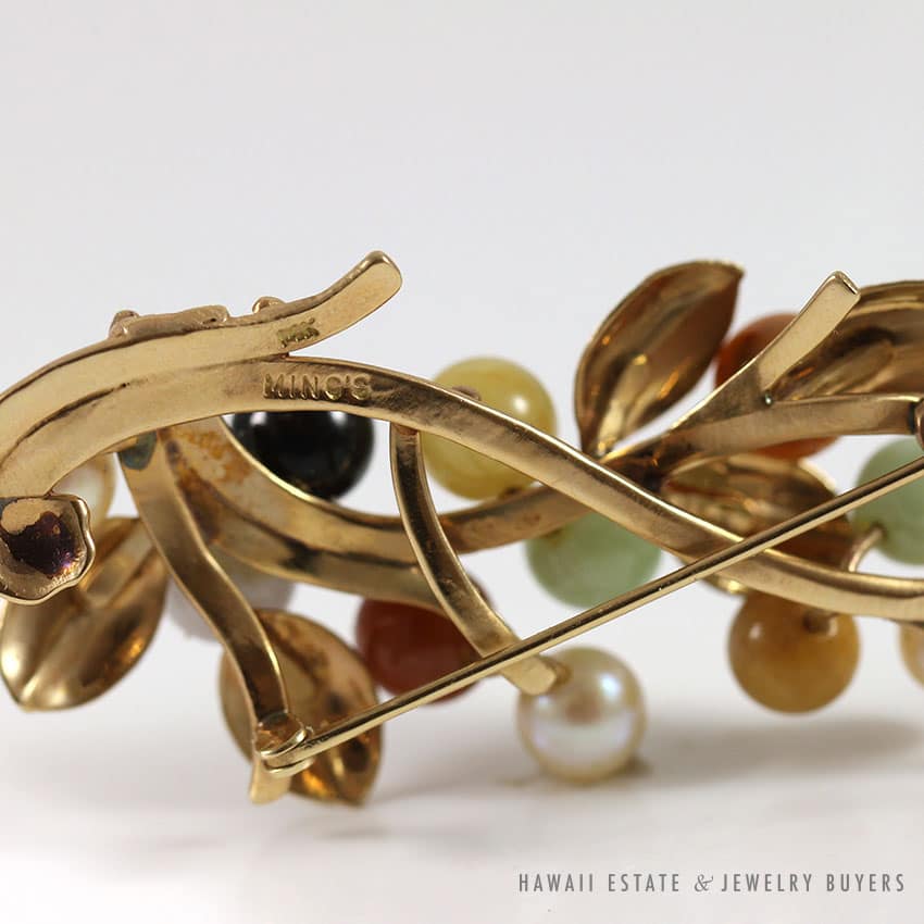DescriptionBRAND:Ming’s Hawaii (signed, authentic)STAMPED: Ming’s 14KSKU 012017-07$2,000.00Out of stockSKU: 012017-07Category: Pre-owned Ming's JewelryTags: hawaii mings, ming's, ming's gold, ming's hawaii, ming's hawaii necklace, ming's necklace, rare, rare mings, vintage ming'sRelated StylesMing’s Hawaii Twin Jade Ball Pearl Ring$1,760.00Ming’s White Jade14K Yellow Gold Set$3,800.00Ming’s Hawaii Pearl & Multi-Color Jade Cluster 14K Ring$3,580.00Ming’s Hawaii Jade Pale Green/White and Brown Splash 14K Yellow Gold Bangle Bracelet$3,500.00