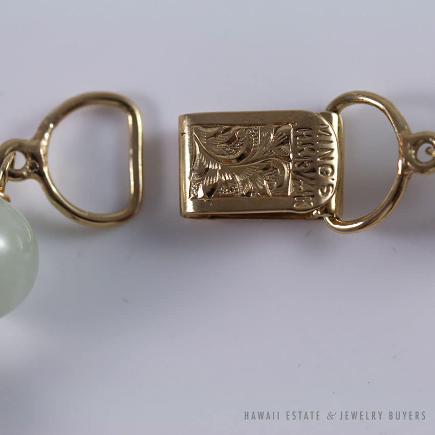 This authentic vintage Ming’s Hawaii ring features a phonix cut out design in 14k yellow gold. The back of the ring is overlapped and adjustable – the default size is approximately a 5.5 – it is estimated to be able to size from a 5 – 6 without bending the ring.