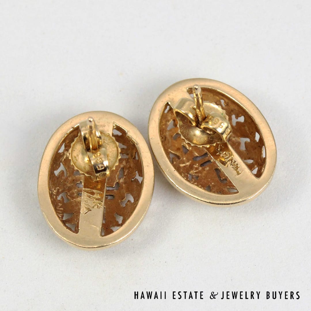 Home » Shop » Ming’s Hawaii Oval Shou 14K Yellow Gold Stud Earrings