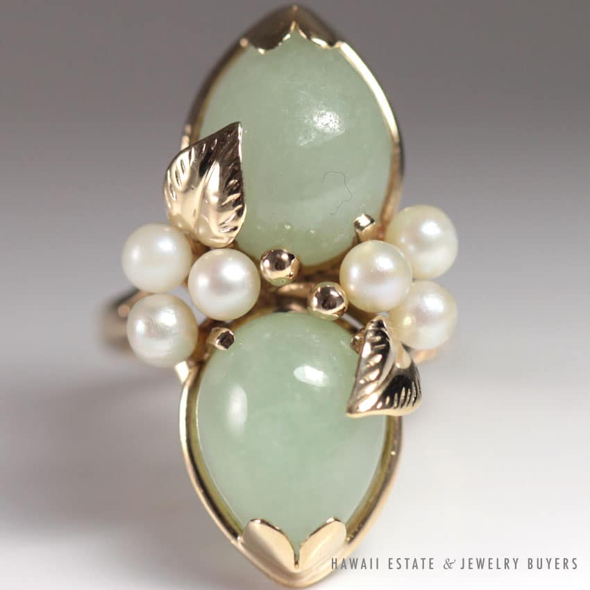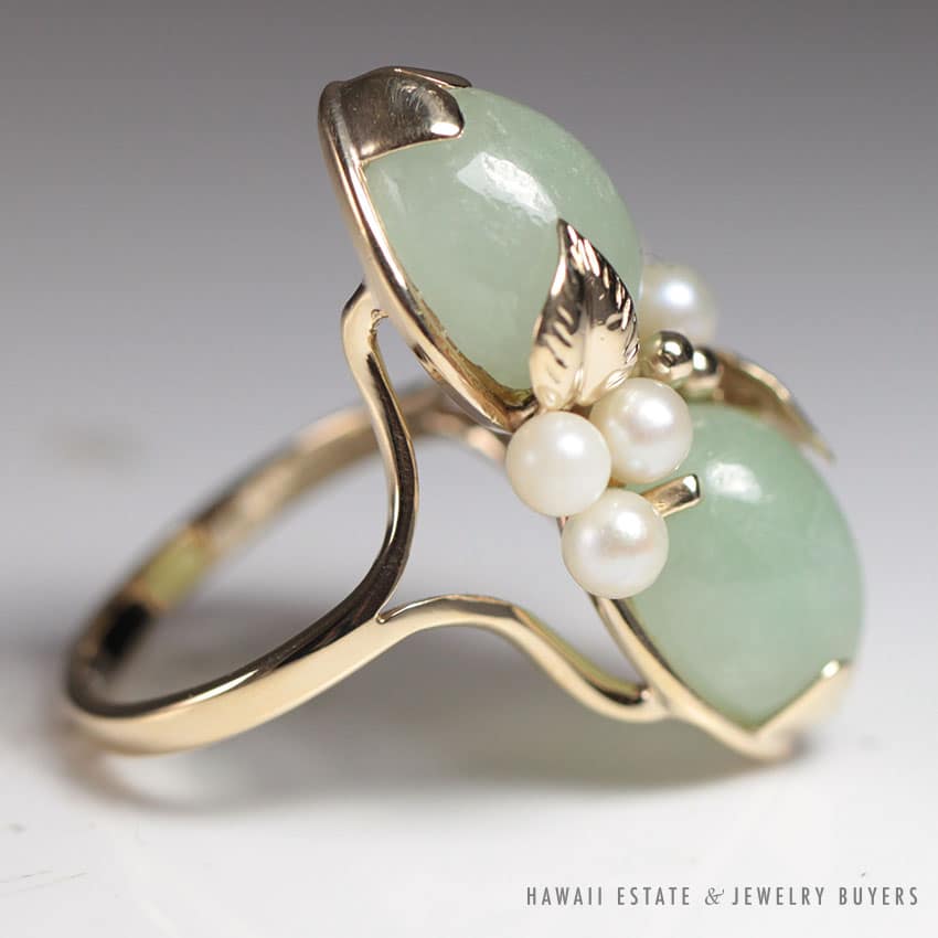 DescriptionMetal: 14K Yellow GoldSize: 6.5Weight: 7.4gSKU: 0907-02$1,125.001 in stockMing's Hawaii Pear Jade Pearl Twin Ring quantityAdd to cartMake OfferSKU: 0907-02Category: Pre-owned Ming's JewelryRelated StylesMing’s Hawaii Jade Cabochon Pearl Ring$2,975.00Ming’s Hawaii Pale Green Jade 14K Yellow Gold Bangle Bracelet$6,830.00Ming’s Pale Whitish Jade Cabochon Ring$3,925.00Ming’s White Jade14K Yellow Gold Set$3,800.00