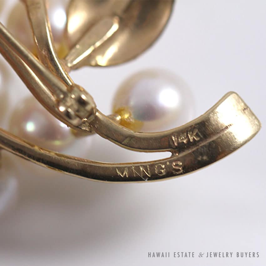 DescriptionSIGNED: MING’S 14K$1,600.001 in stockMing's Hawaii Pearl Cluster 14K Yellow Gold Brooch & Clip Earrings Set quantityAdd to cartMake OfferSKU: 1986-04Category: Pre-owned Ming's JewelryTags: brooch, clip earrings, ming's, ming's hawaii, ming's hawaiim, ming's set, pearl cluster, pearl setRelated StylesMing’s Green Jade Cabochon Flower Border Ring$1,800.00Ming’s Hawaii Pale Green Twin Jade Ball & White Pearl Ring$1,600.00Ming’s Lavender Jade & Pearl Ring$3,600.00Ming’s Multi Color Jade & Pearl Grid Ring$1,425.00