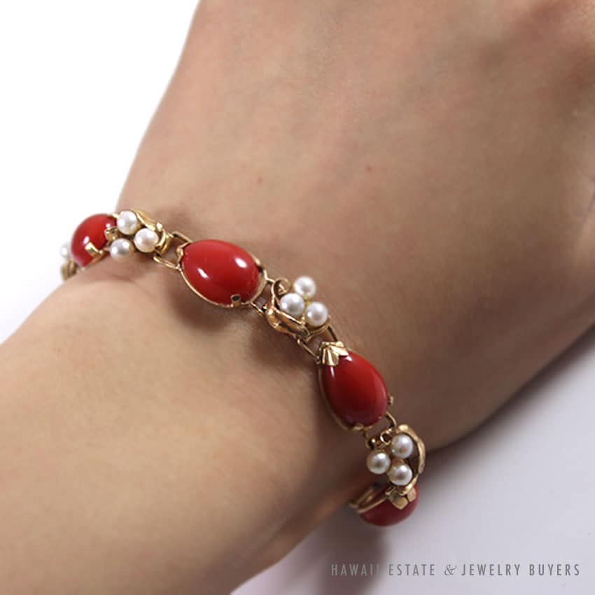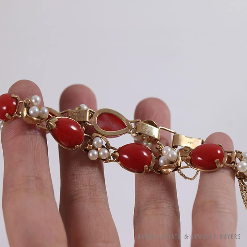 DescriptionBRAND: Ming’s Hawaii (singed, authentic)STAMPED: 14KWEIGHT: 16.4gSKU 0829-02SOLD$1,100.00Out of stockSKU: 0829-02Category: Pre-owned Ming's JewelryTags: bracelet, coral, hawaii mings, ming's, ming's hawaii, pearl, vintage ming's, yellow goldRelated StylesMing’s Hawaii Pale Green Jade 14K Yellow Gold Bangle Bracelet$6,830.00Ming’s Hawaii Green Jade 14K Yellow Gold Hinged Bangle$7,480.00Ming’s Hawaii Twin Jade Ball Pearl Ring$1,975.00Ming’s Green Jade Cabochon Flower Border Ring$1,800.00