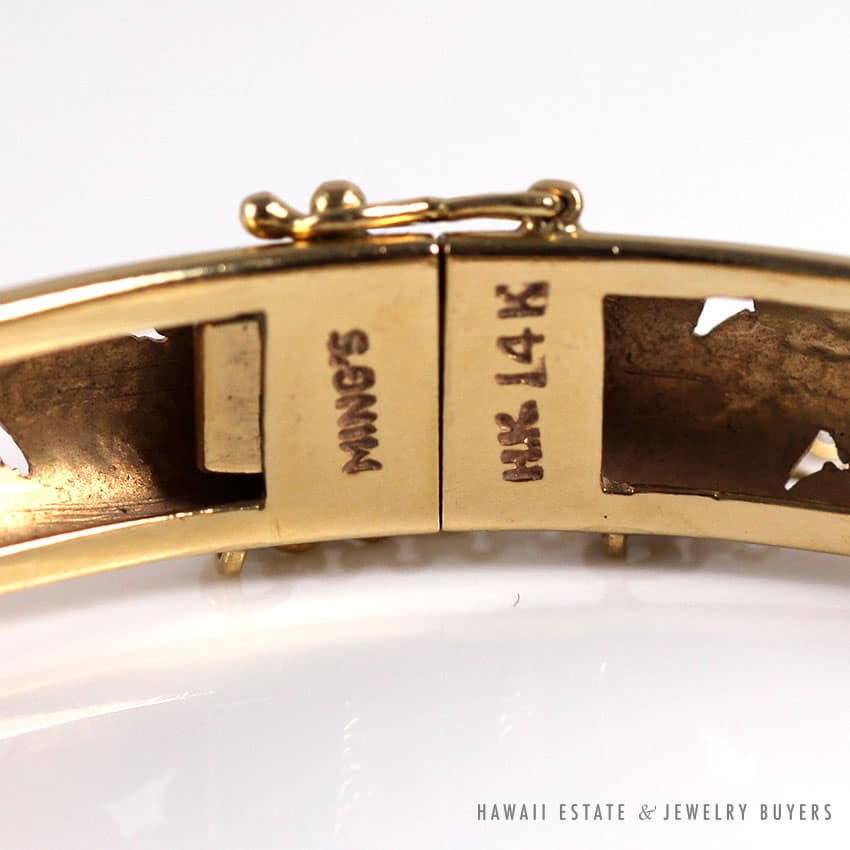 Description$2,200.00Out of stockSKU: jt100518-02Category: Pre-owned Ming's JewelryRelated StylesMing’s Hawaii Twin Jade Ball Pearl Ring$1,300.00Ming’s Green Jade Cabochon Flower Border Ring$1,800.00Ming’s Hawaii Oval Carved Flower Large Jade 14K Yellow Gold Ring$1,800.00Ming’s Hawaii Pale Green Jade 14K Yellow Gold Bangle Bracelet$6,830.00