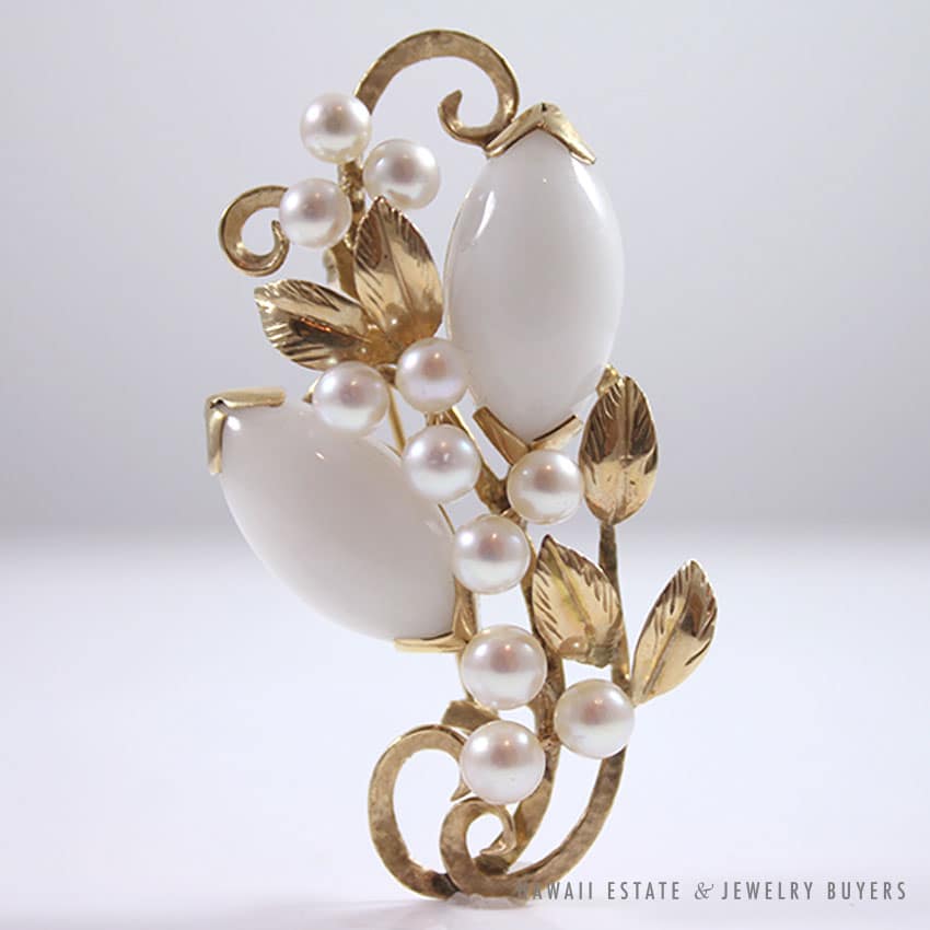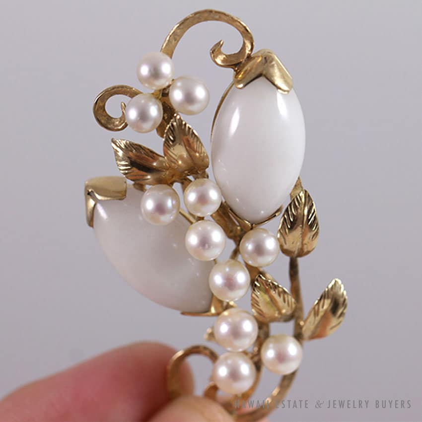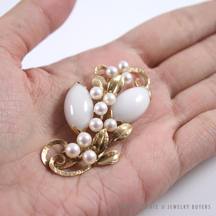 DescriptionSIGNED: MING’S 14KSKU:1934-01$1,345.001 in stockMing's Hawaii White Jade & Pearl 14K Yellow Gold Brooch quantityAdd to cartBuy withMake OfferSKU: 1934-01Category: Pre-owned Ming's JewelryTags: brooch, jade brooch, JADE PIN, ming's, ming's hawaii, pin, white jadeRelated StylesMing’s Hawaii 14K Yellow Gold Jade Hinged Bangle$7,710.00Ming’s Black Jade 14K Yellow Gold Set$4,300.00Ming’s Hawaii Twin Jade Ball Pearl Ring$1,300.00Ming’s Hawaii Green Jade 14K Yellow Gold Hinged Bangle$7,480.00
