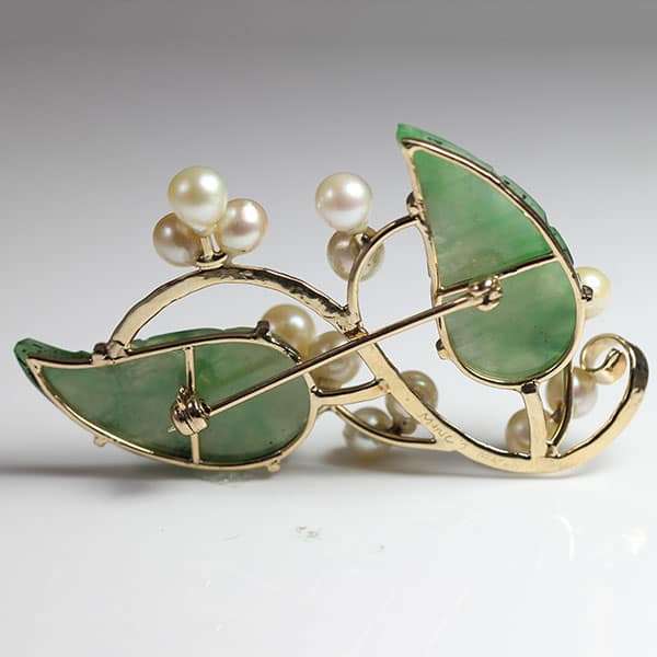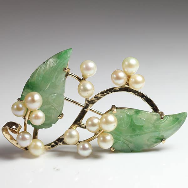 Ming’s Jade Pearl Leaf Brooch