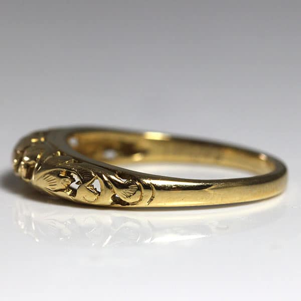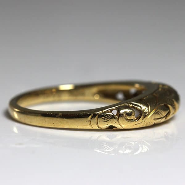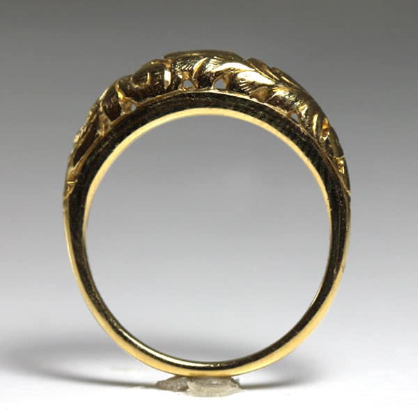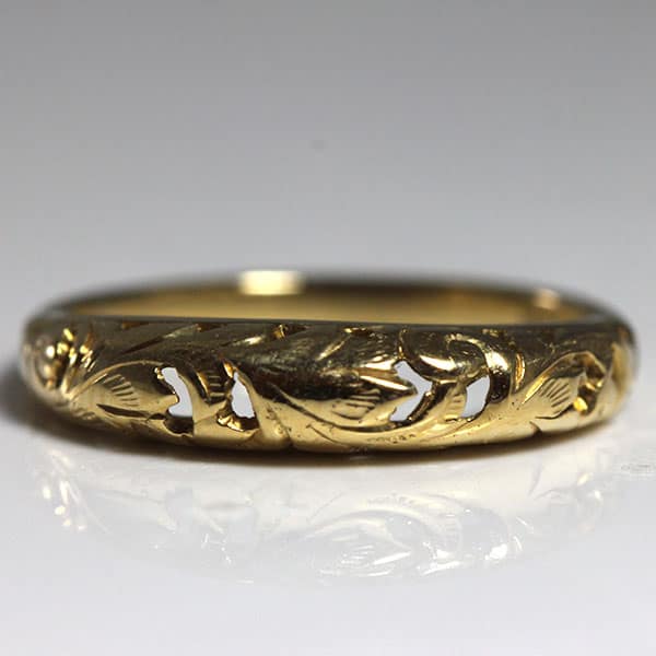 DescriptionThe ring is pierced and cut out with leave top and barreled shank and measures approx. 1.88 – 4.18mm.Weight: 2.5gCirca: 1970’sSKU: 0909-54 $400.00Out of stockSKU: 0909-54Category: Pre-owned Ming's JewelryRelated StylesMing’s Lavender Jade & Pearl Ring$3,600.00Ming’s Hawaii Jade Cabochon Pearl Ring$2,975.00Ming’s Hawaii Oval Carved Flower Large Jade 14K Yellow Gold Ring$2,440.00Ming’s Green Jade Cabochon Flower Border Ring$1,800.00