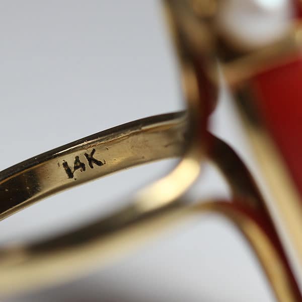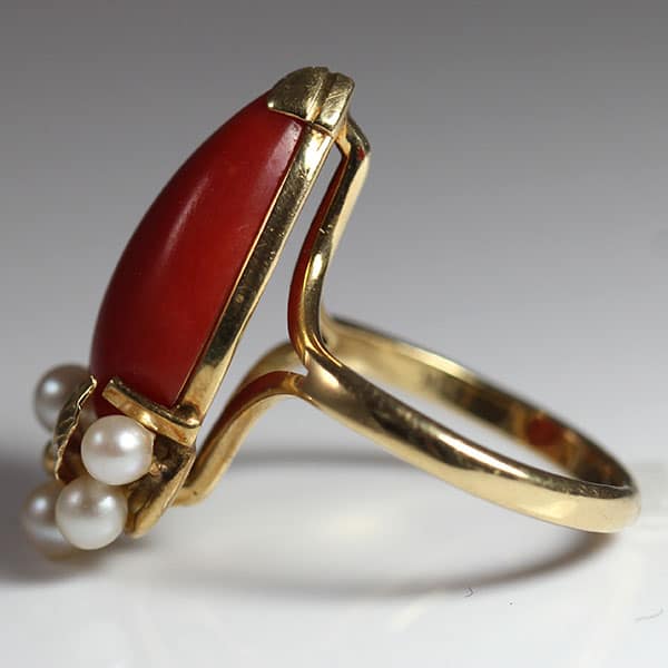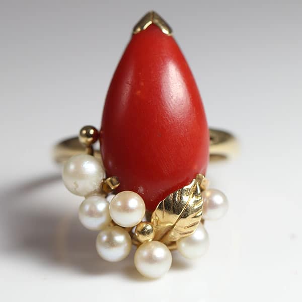DescriptionThe Coral Marquise shape is reddish in color with gold leaf and pearl accent.Weight: 4.8gSize: approximately 4.25-4.5 (resizable for a fee)SKU: 0115-04SOLD$600.00Out of stockSKU: 0115-04Category: Pre-owned Ming's JewelryRelated StylesMing’s Hawaii Pearl Cluster Flower 14K Ring$1,100.00Ming’s Lavender Jade & Pearl Ring$3,600.00Ming’s Multi Color Jade & Pearl Grid Ring$1,900.00Ming’s Hawaii Jade Cabochon Pearl Ring$2,975.00