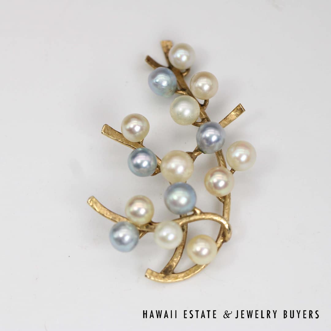 MING'S 10.8g 14KYG WHITE AND BLUE PEARL PENDANT MEASURES 57x35mm (3083-06)