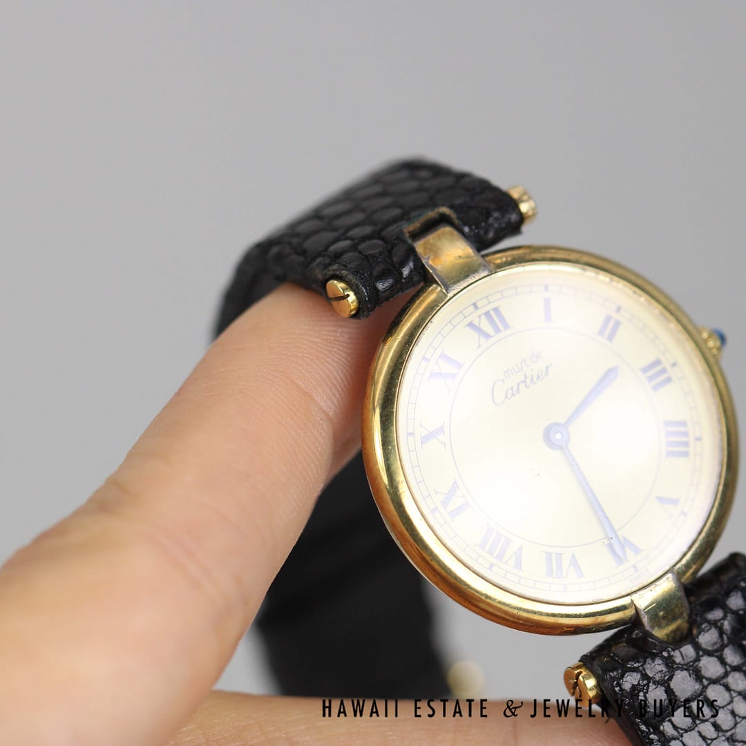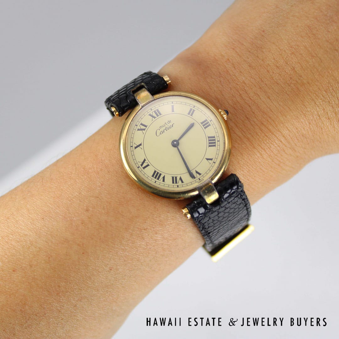 MUST DE CARTIER VERMEIL WATCH ROUND DIAL ROMAN NUMERALS (040124-03)