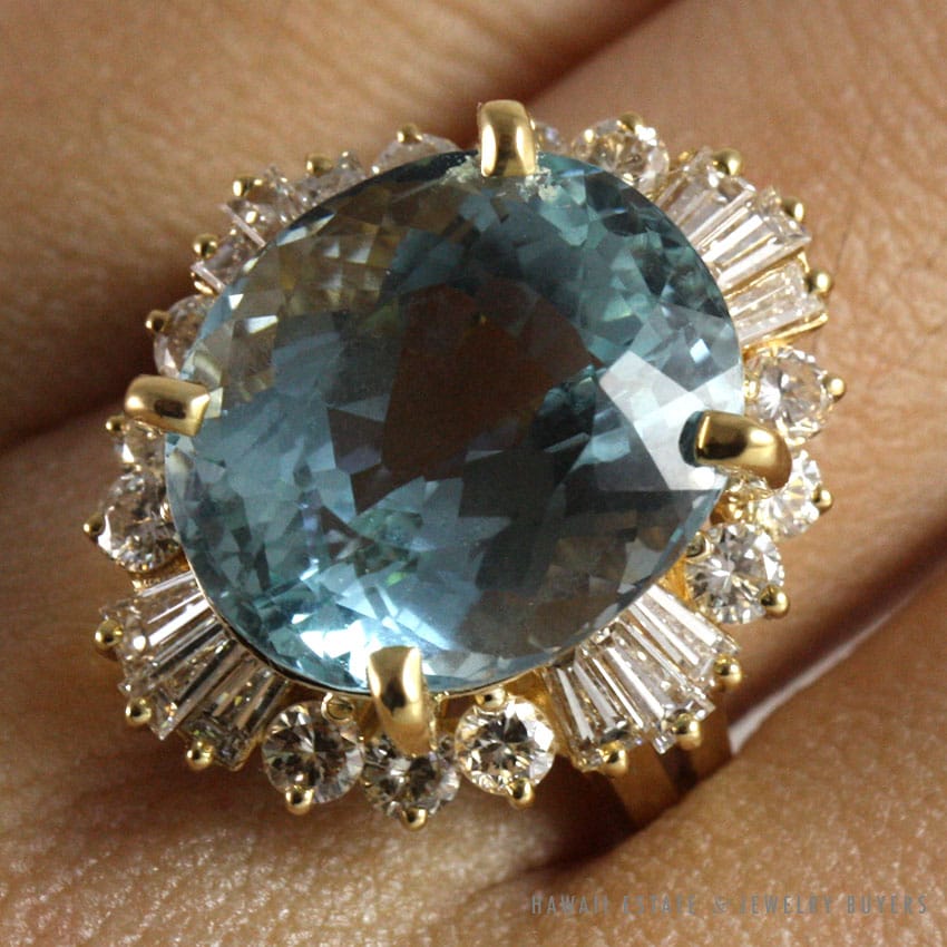 – Natural Blue aquarmarine oval faceted center stone approx. 12.18CTW