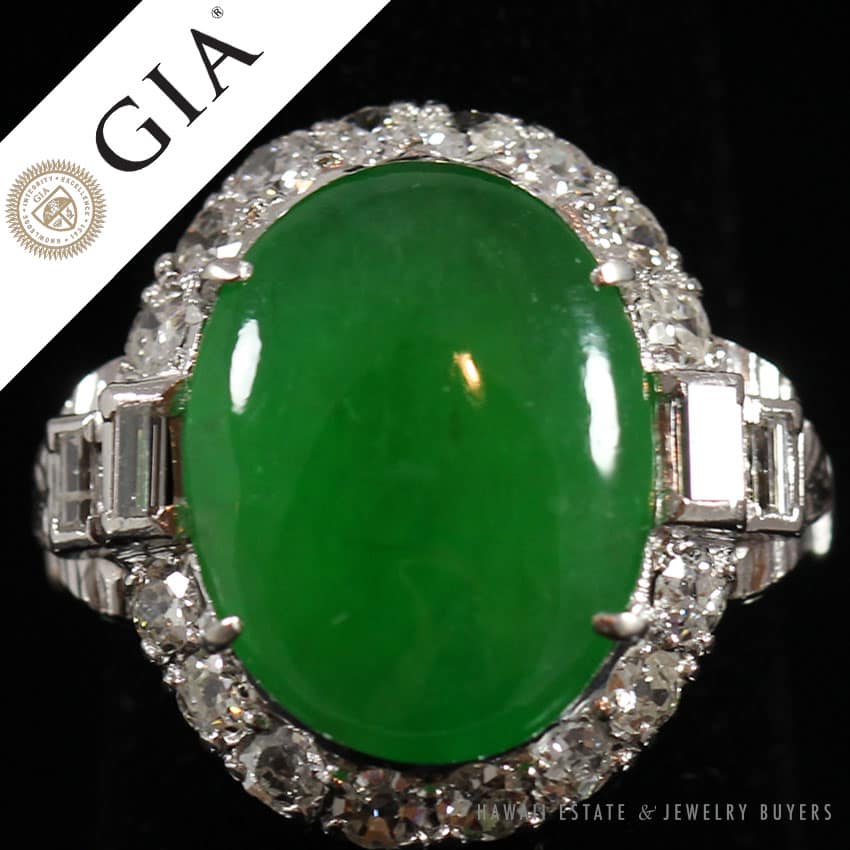 DescriptionGIATESTED: PLATINUMSIZE: 5SKU: 1855-04$11,000.00Out of stockSKU: 1855-04Category: Pre-owned Vintage JewelryTags: diamonds, imperial jade, jade, jade ring, PLATINUM JADE, platinum ringRelated StylesAntique Victorian Pearl Old Mine Cut Diamond Circle Pin$2,100.00Certified White Nephrite Jade Pendant with Multicolored Stones$8,700.00Estate Large 18mm South Sea Pearl Necklace$18,000.00Certified Nephrite Jade White Hollow Cylinder$3,700.00